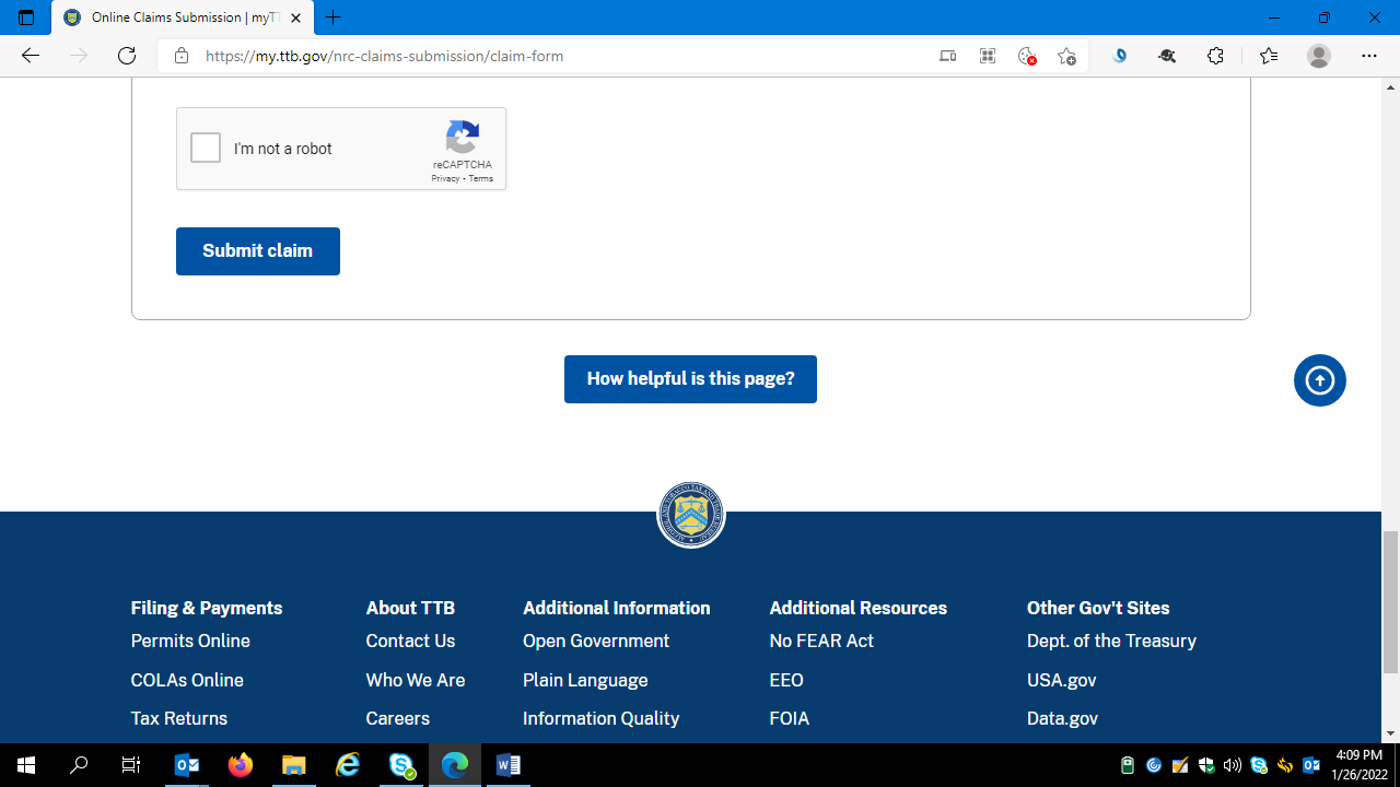 Respondents verify that they are not a robot, and click the Submit Claim button: