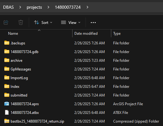 When the tool completes, a new browser window will open and load the SWIM webpage. The zip file containing the submission will be located inside the GOVID folder and named bastbx<yy>_<GOVID>_return.zip as shown in Figure 23.