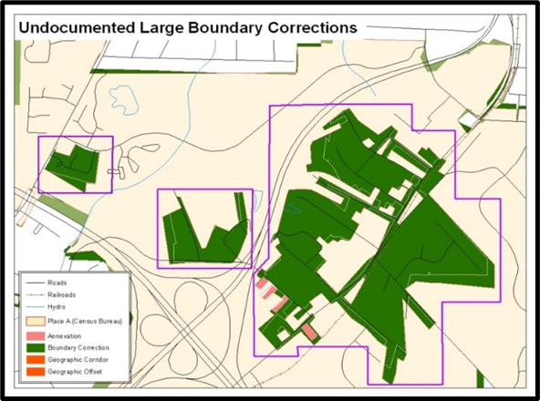 legal changes. If the Census Bureau discovers that an area of land is