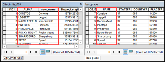 Table 1: Feature Class Field Names Based on Geography Type 5