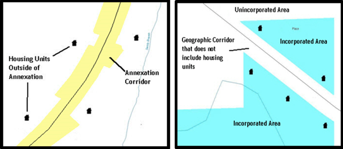 These boundary corrections are not snapped to existing linear features in the MAF/TIGER System. The Census Bureau will snap both boundary corrections to the centerlines to avoid population being assigned to incorrect governments.
