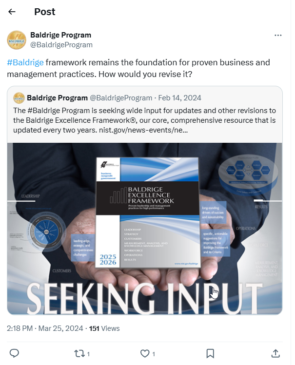 Seeking Input on the 2025-2026 Baldrige Excellence Framework