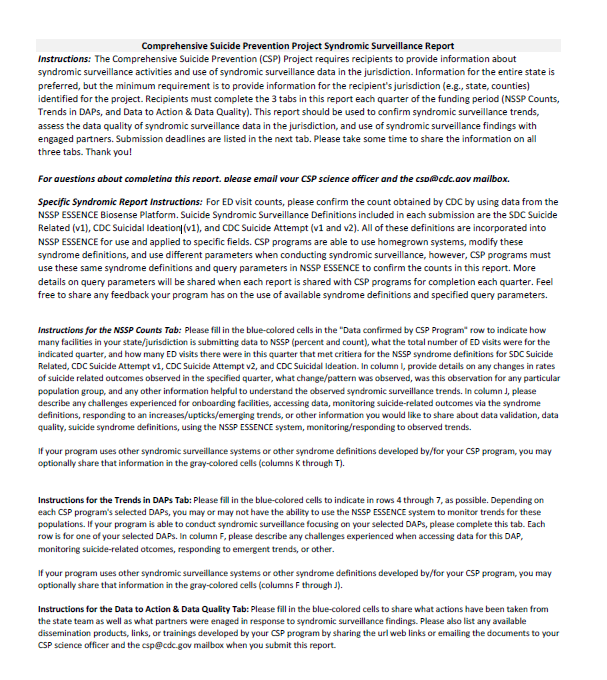 [NCIPC] Performance Monitoring of CDC’s Comprehensive Suicide Prevention Program