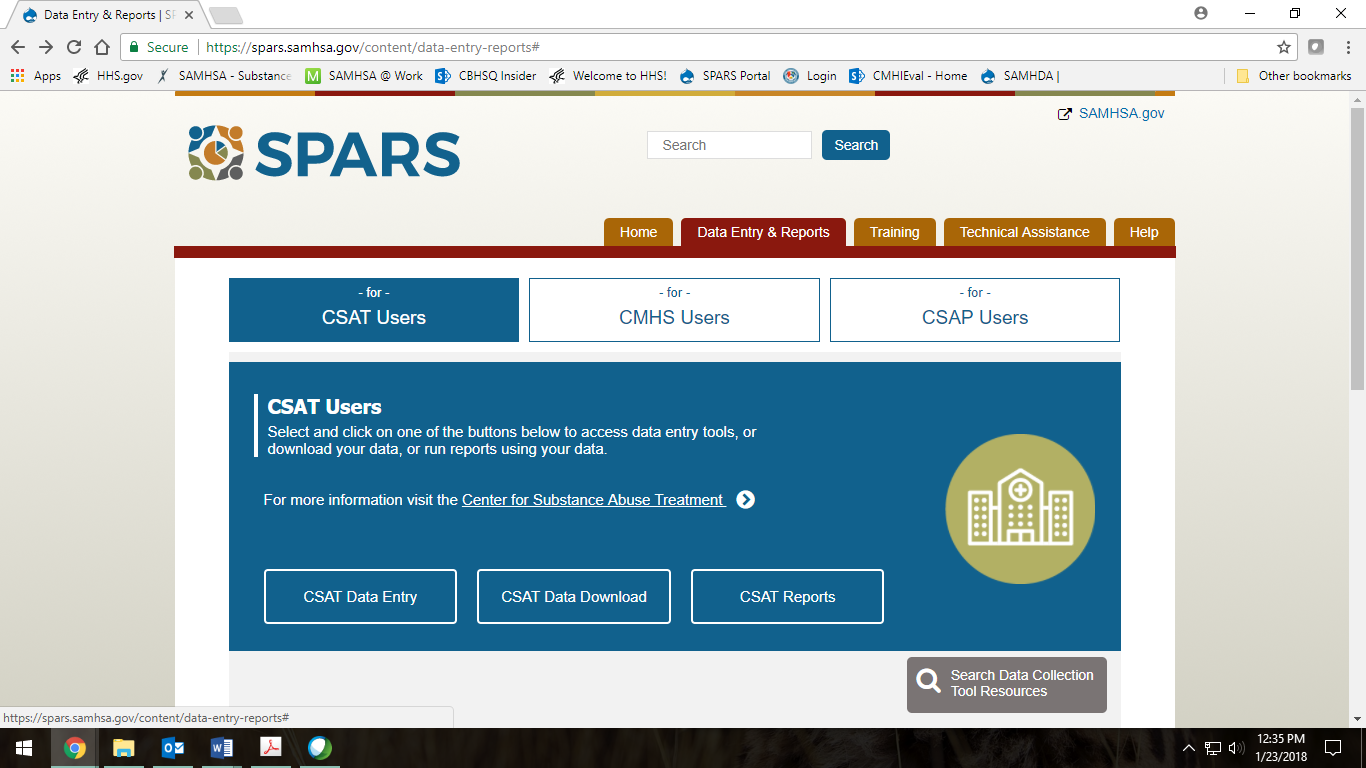 SAMHSA’s data collection activities are intended to promote the use of consistent measures among CSAT-funded grantees and contractors. These measures are a result of extensive examination and recommendations, using consistent criteria, by panels of staff, experts, and grantees. Wherever feasible, the measures are consistent with or build upon previous data development efforts within CSAT. These data collection activities are organized to reflect and support the National Outcome Measures domains specified for SAMHSA’s programs providing direct services.