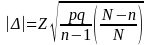 where │∆│is the desired precision (5%), N is the number in the population, p is the assumed proportion (.15), q is 1-p, and Z is the appropriate critical value from the normal curve (either 1.645 or 1.96, depending on the error rate, and n is the sample size.