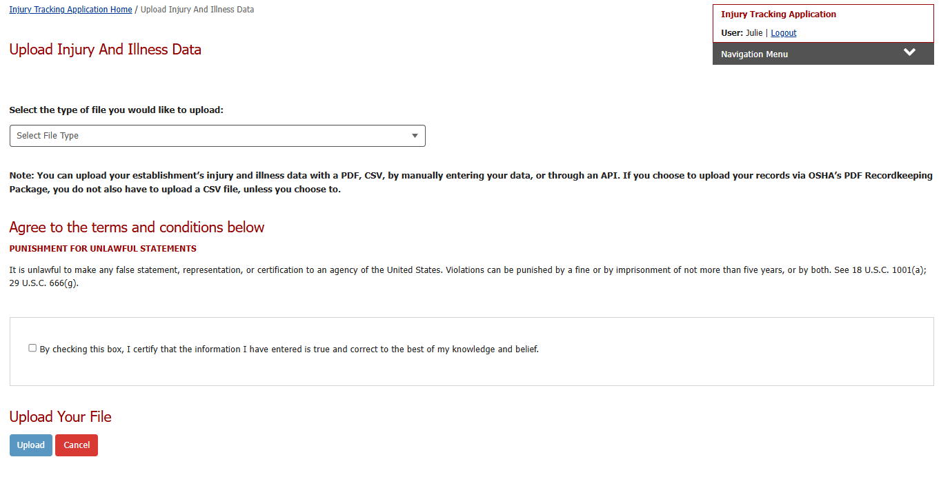 Upload Injury/Illness file