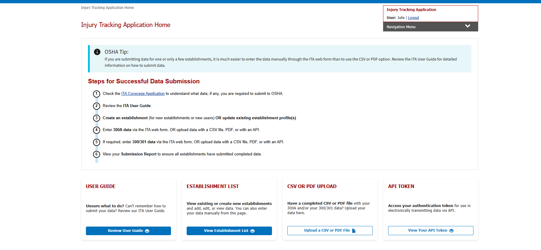 OMB Control Number 1218-0176 – Justification of Non-Substantive Change in the Injury Tracking Application (ITA), 2025