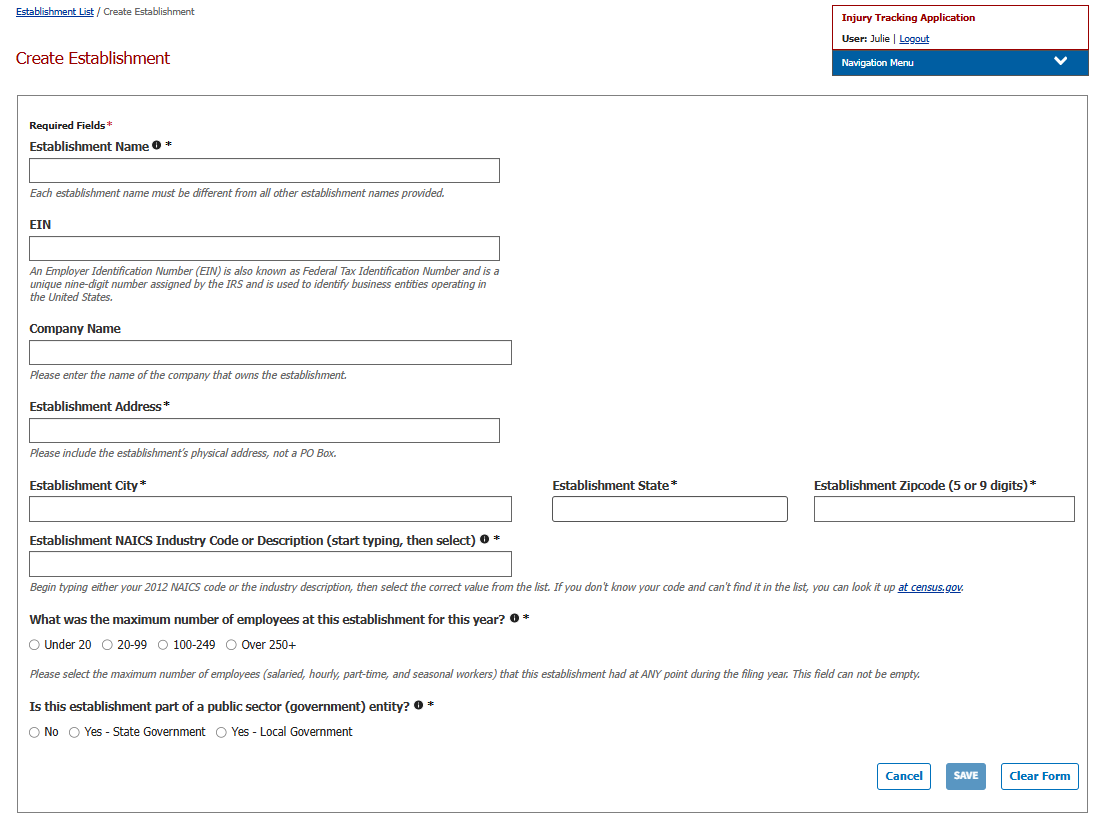 OMB Control Number 1218-0176 – Justification of Non-Substantive Change in the Injury Tracking Application (ITA), 2025