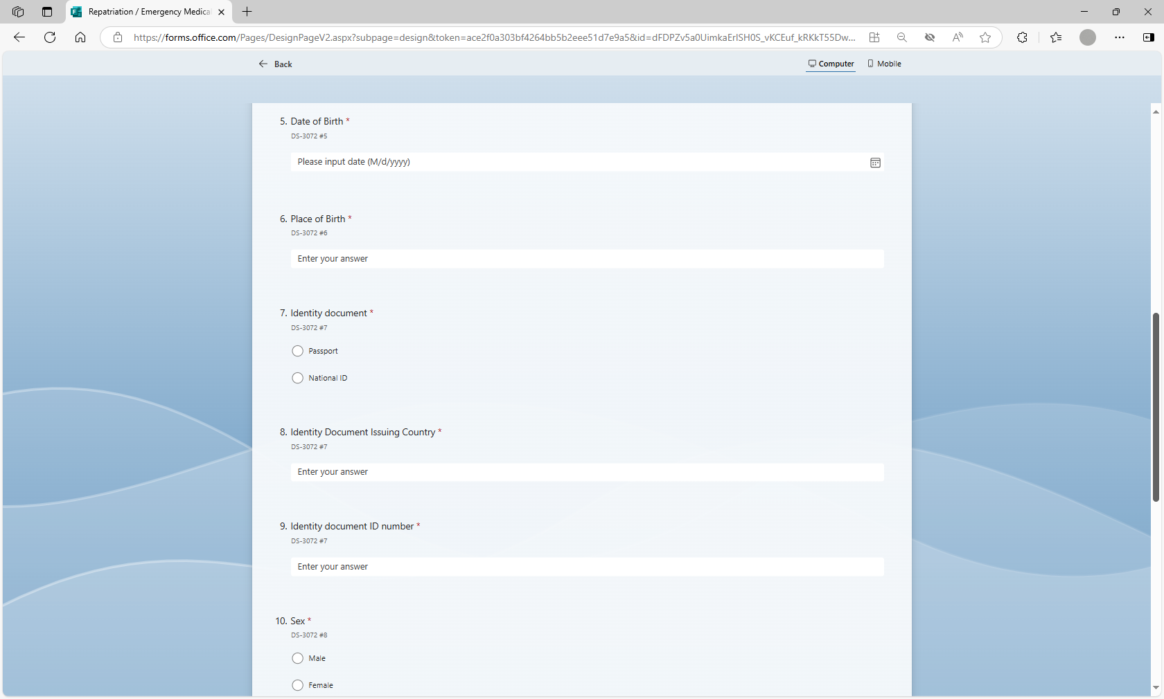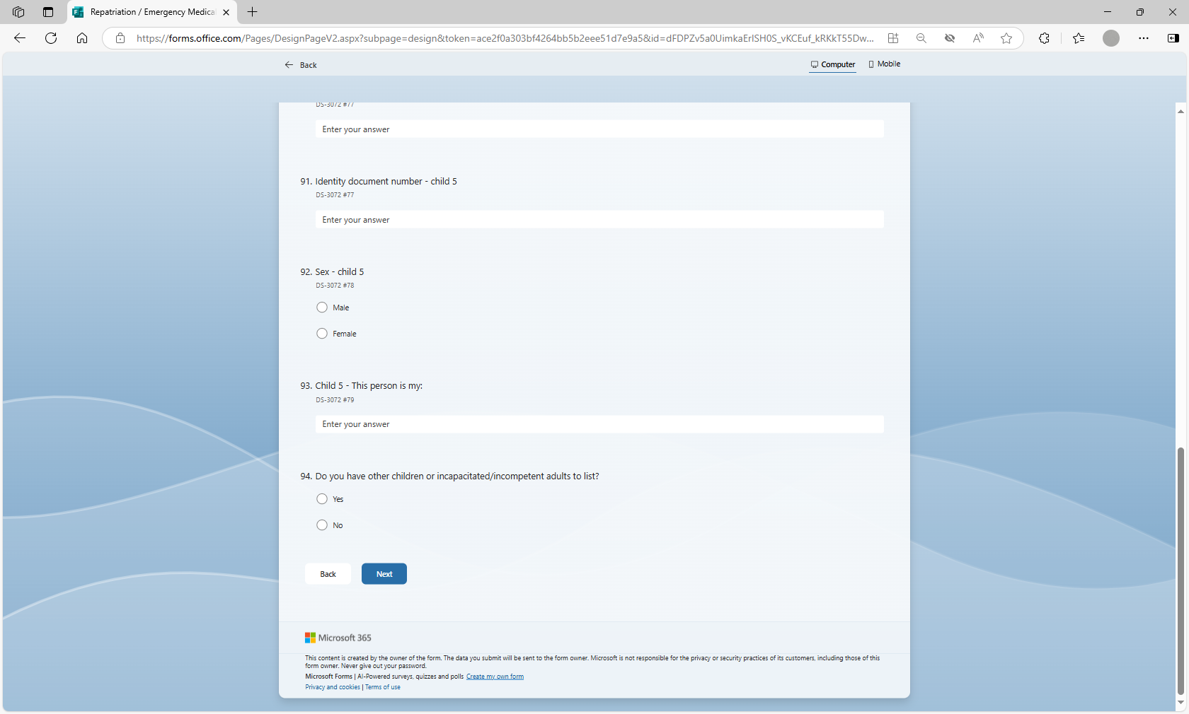 Request to Use Microsoft Forms to Populate Form DS-3072