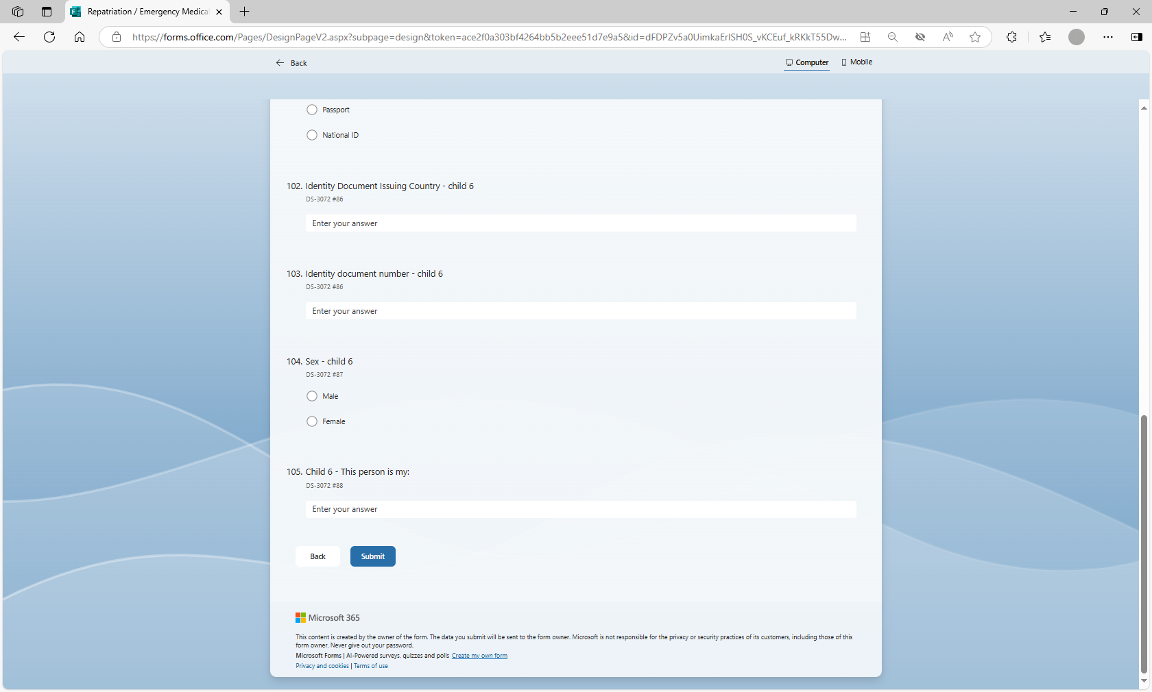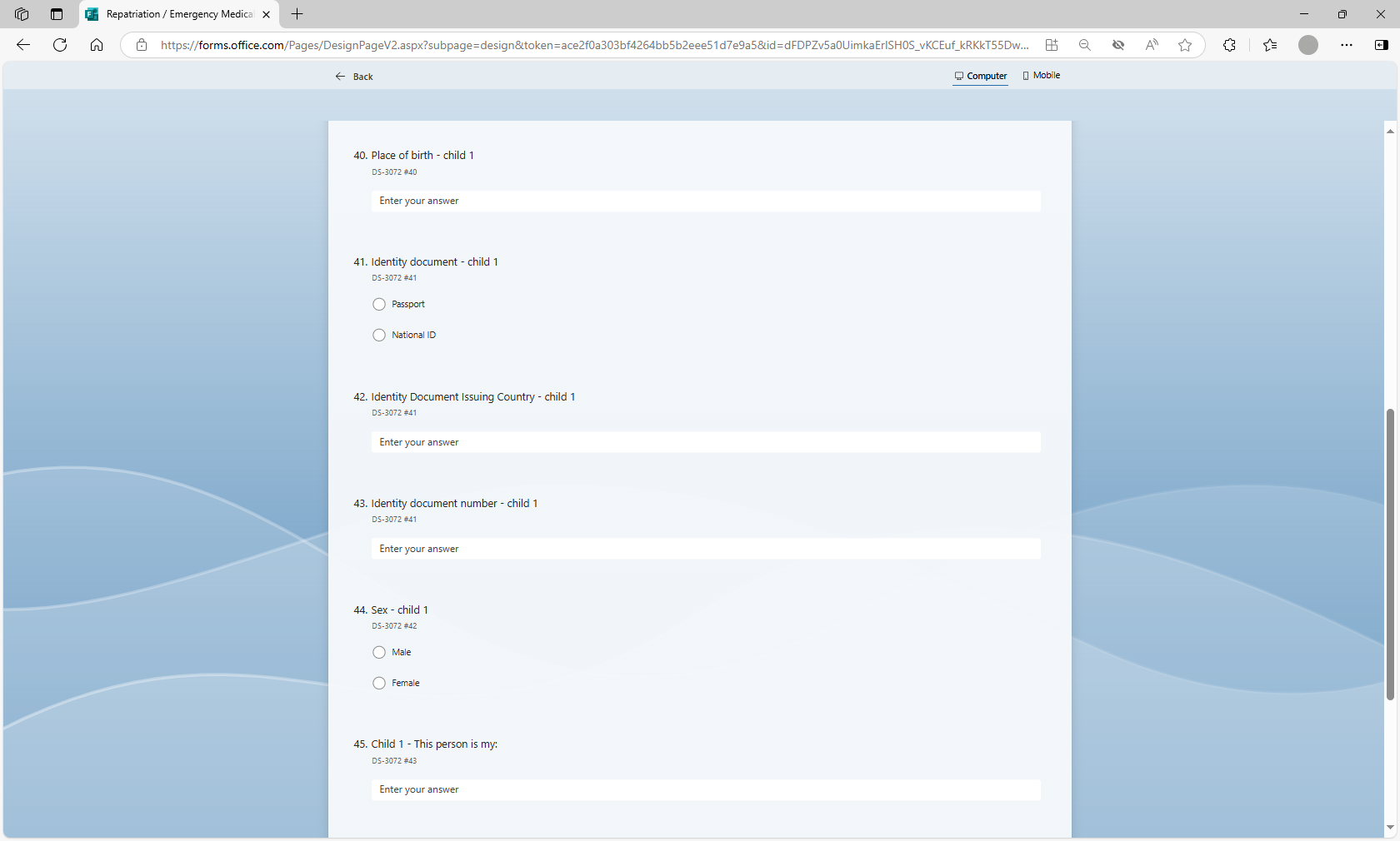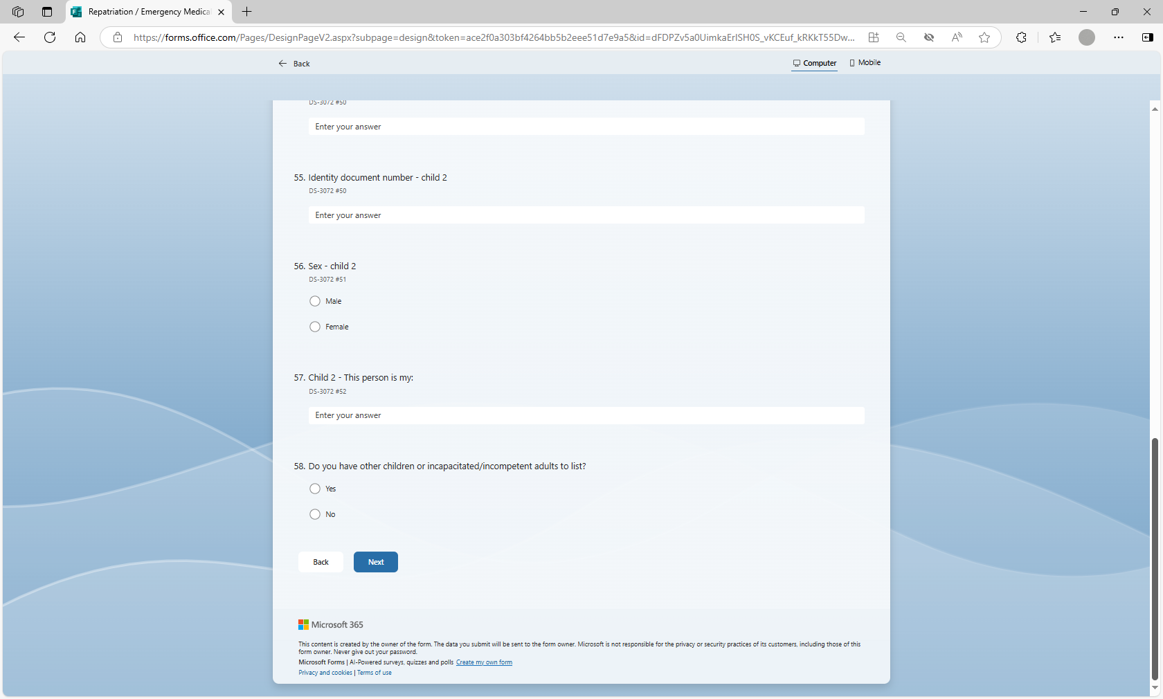 Request to Use Microsoft Forms to Populate Form DS-3072