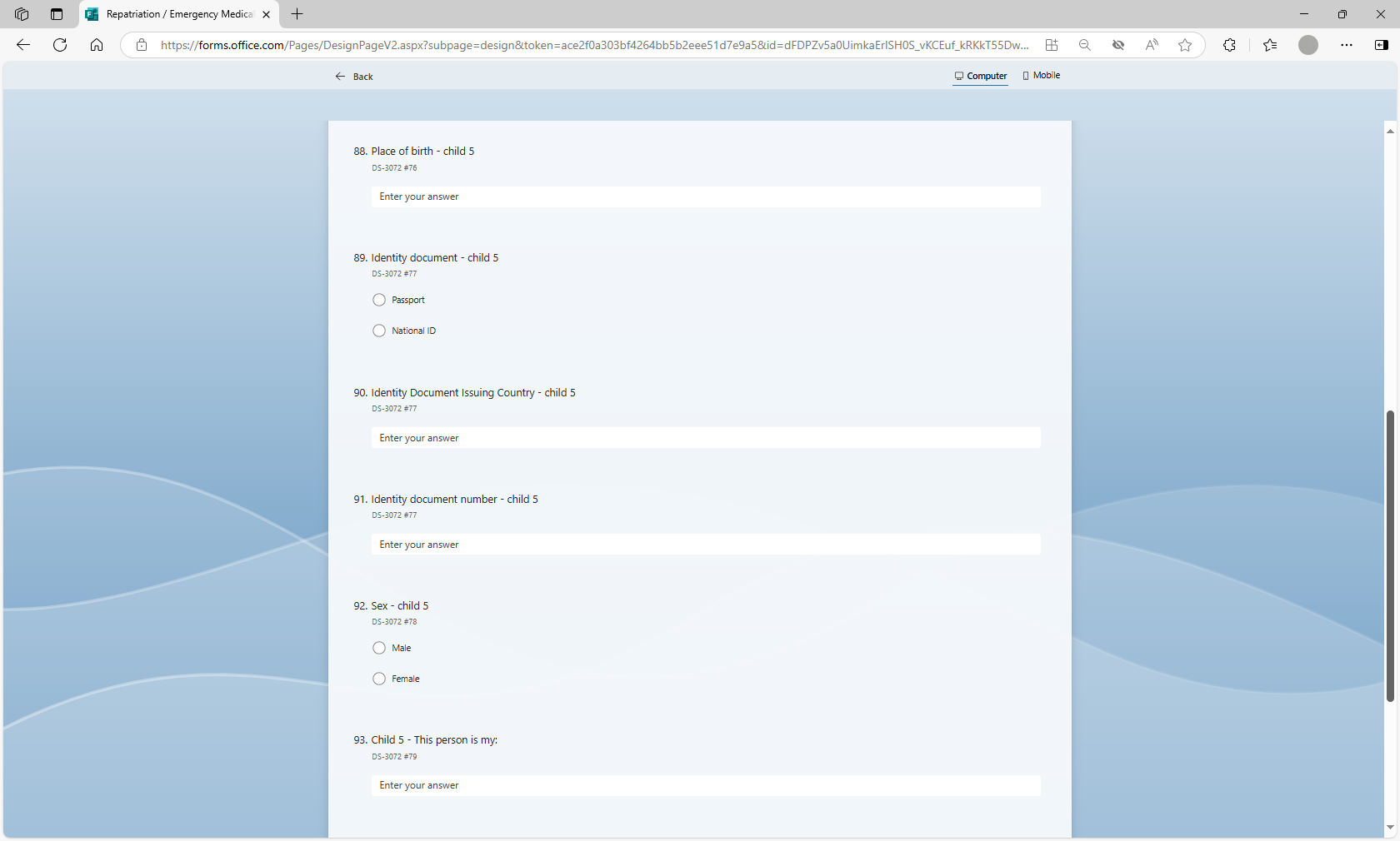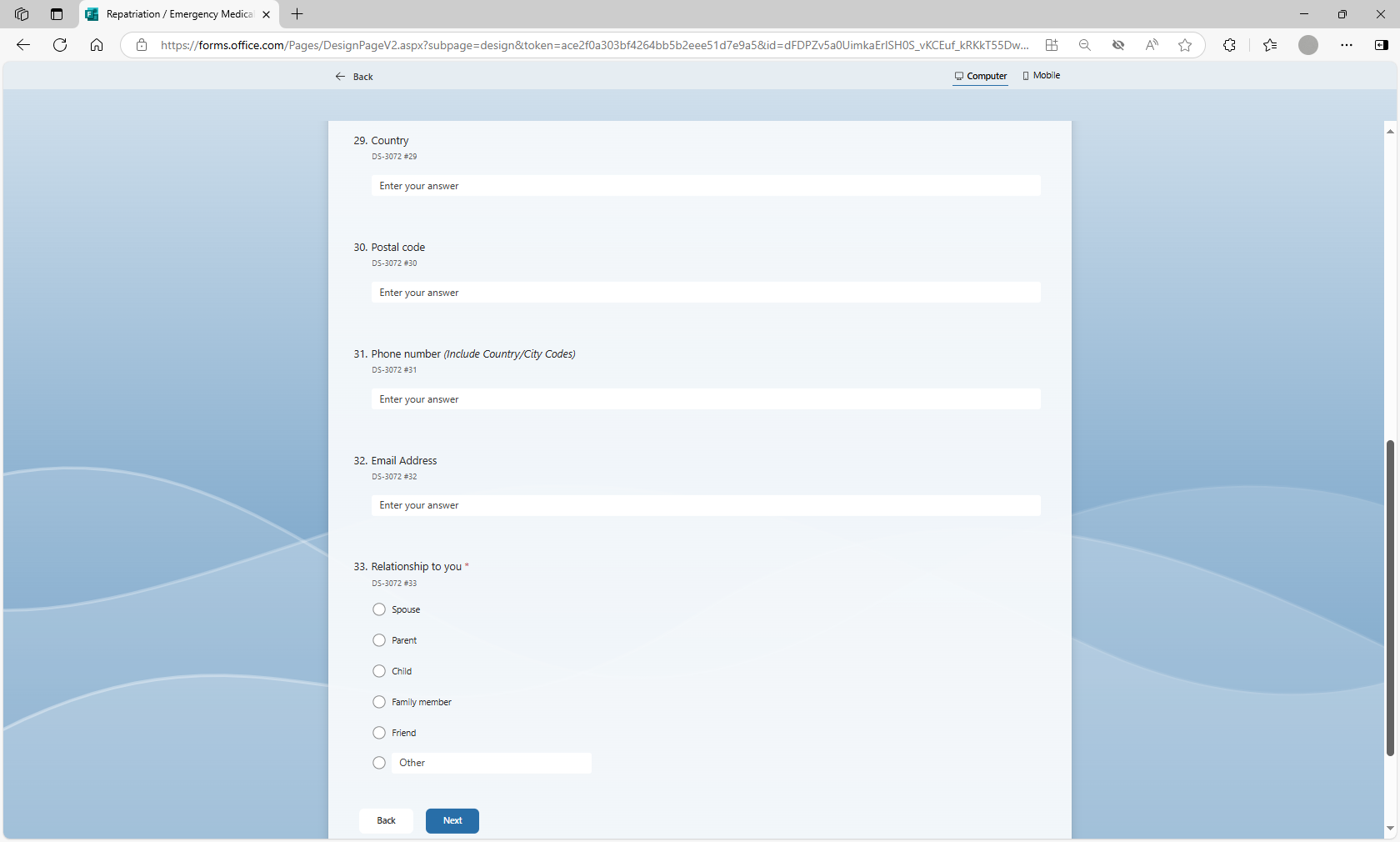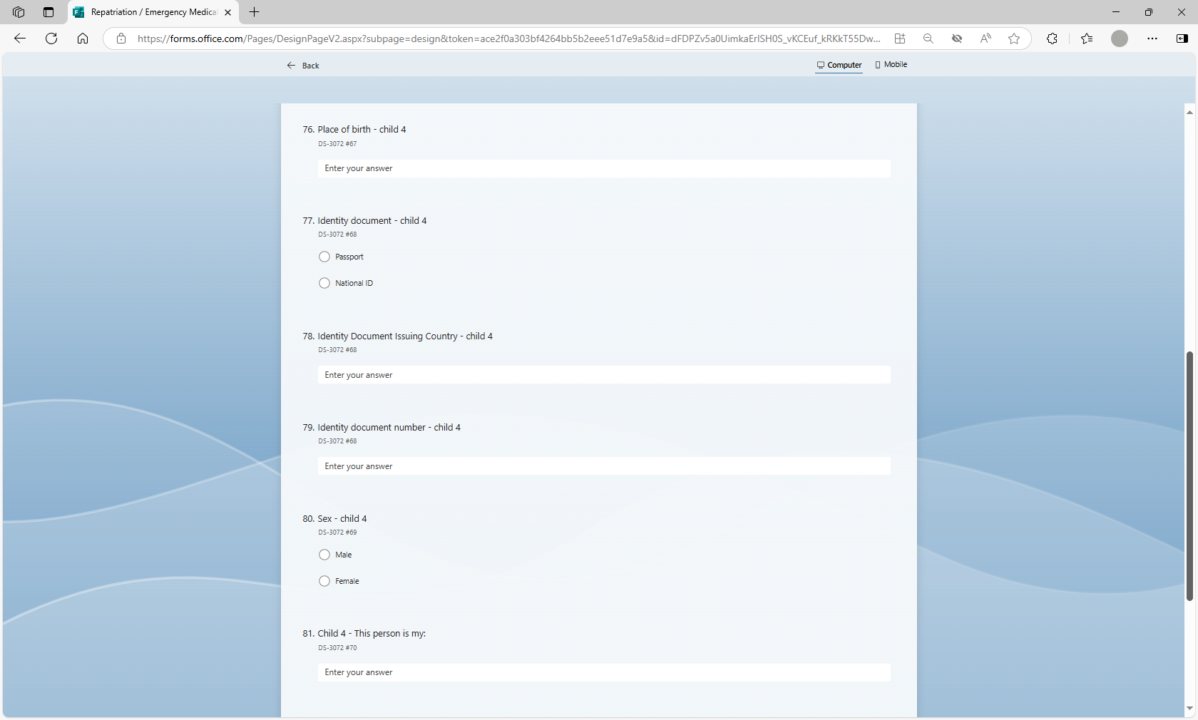 Request to Use Microsoft Forms to Populate Form DS-3072