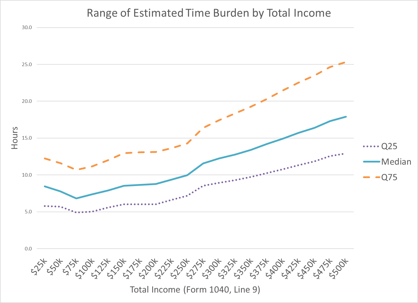 Note: Reported time and cost burdens are national averages and do not necessarily reflect a “typical” case. Most taxpayers experience lower than average burden, with taxpayer burden varying considerably by taxpayer type. |