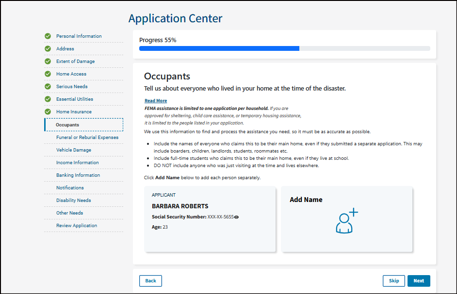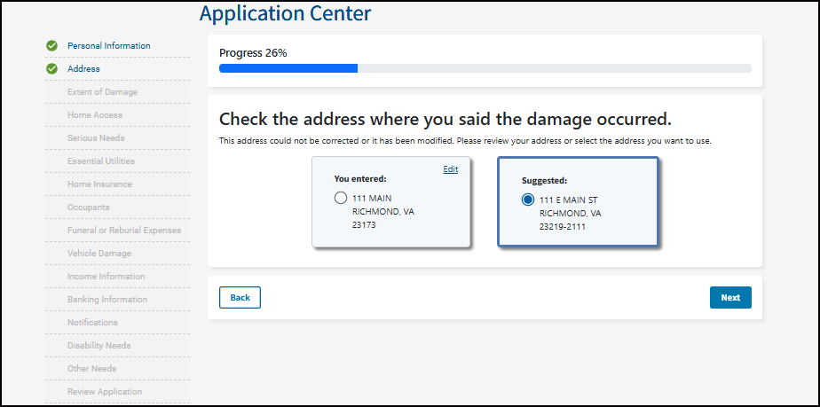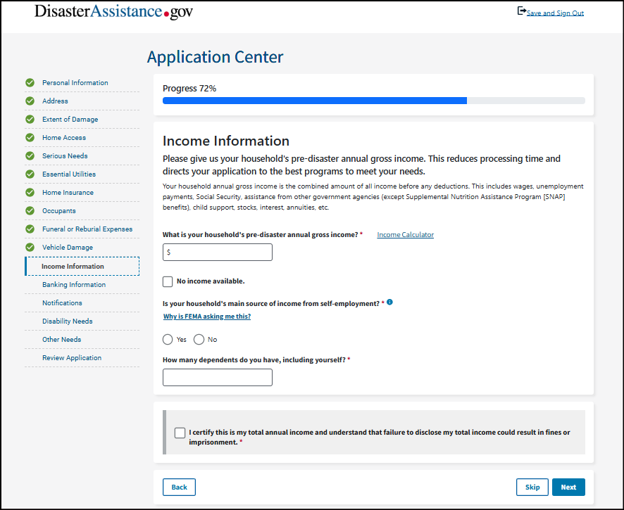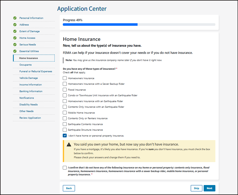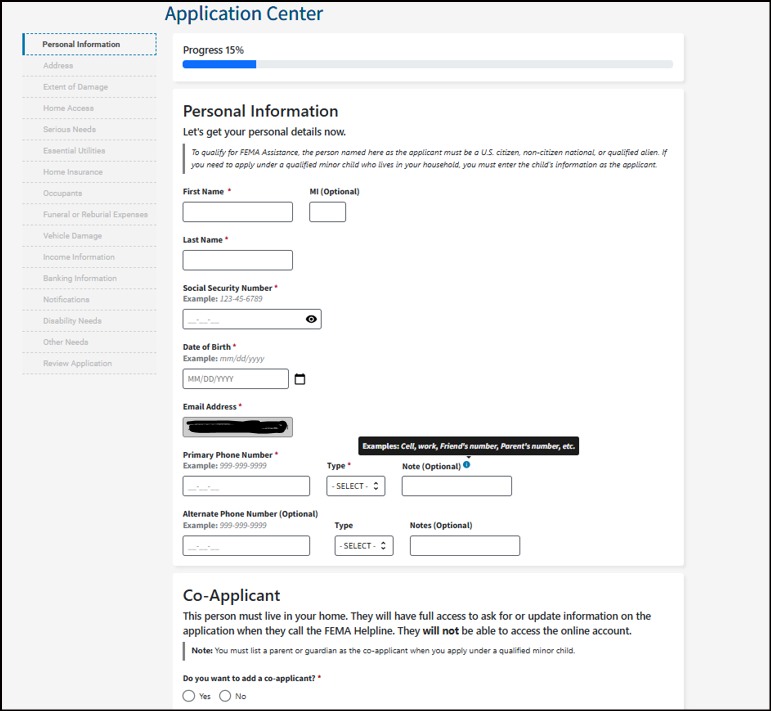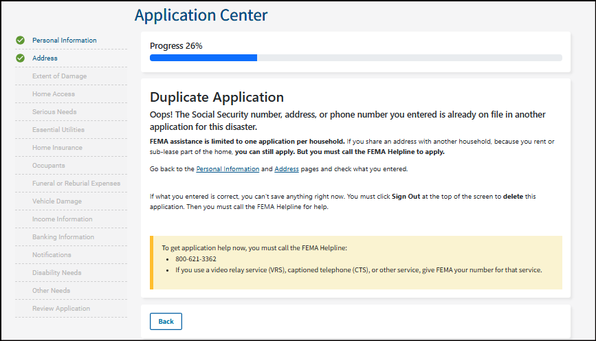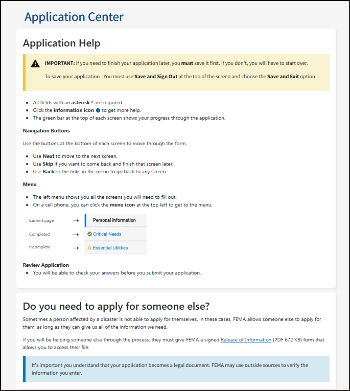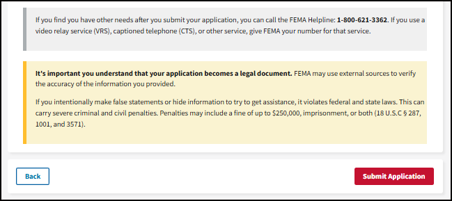 It's important you understand that your application becomes a legal document. FEMA may use external sources to verify the accuracy of the information you provided.