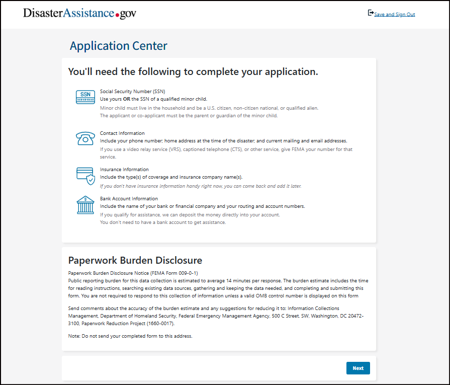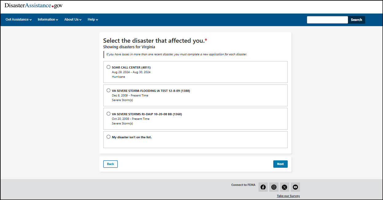 DisasterAssistance.gov Staging: All Needs Registration with content