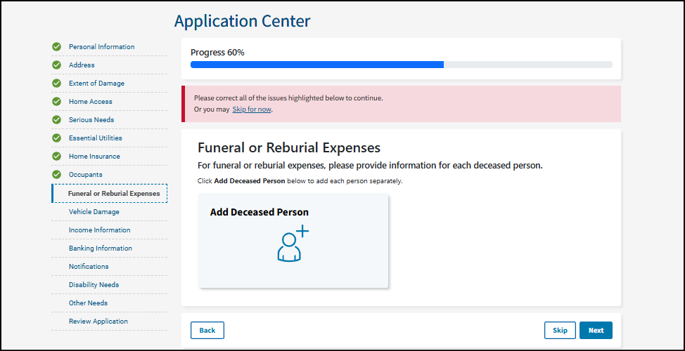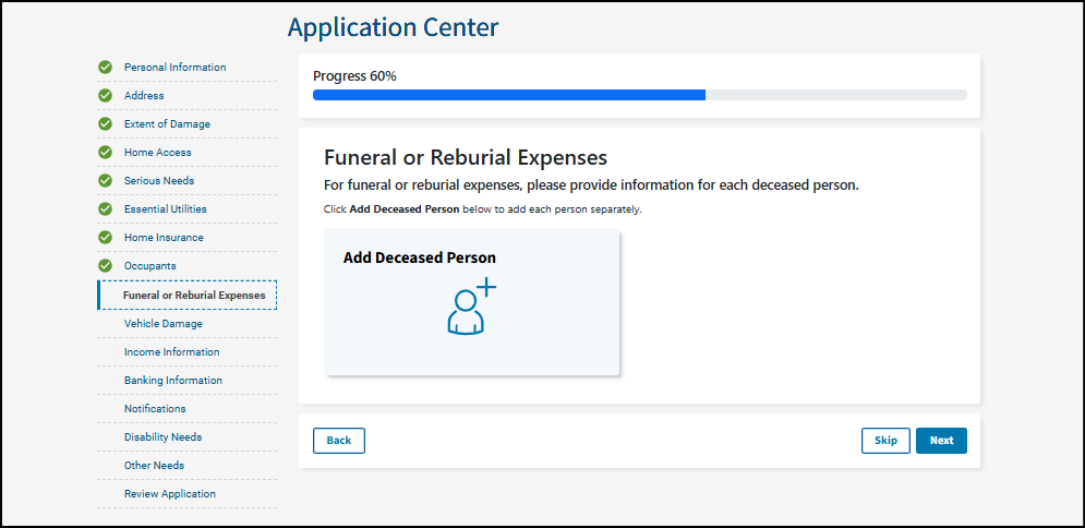 FEMA may ask for a copy of your receipts or estimates for funeral costs.