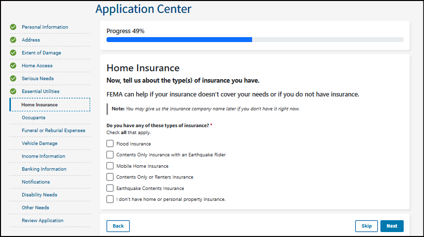 If you have homeowner's insurance, FEMA may not send an inspector right away. You may need to submit insurance documents before we can schedule an inspection.