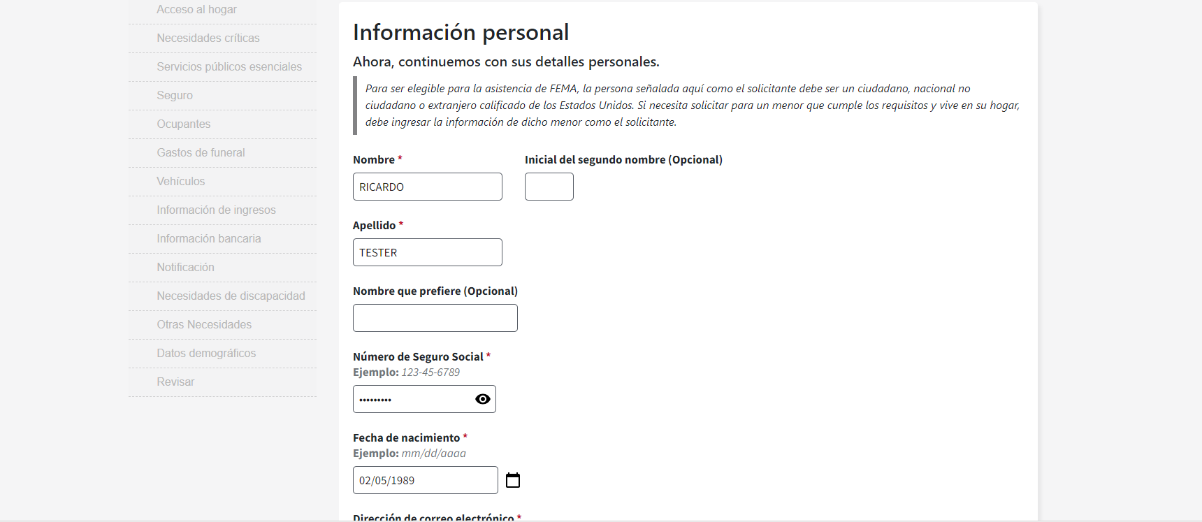 Tele-Registration Application for Disaster Assistance (English and Spanish)