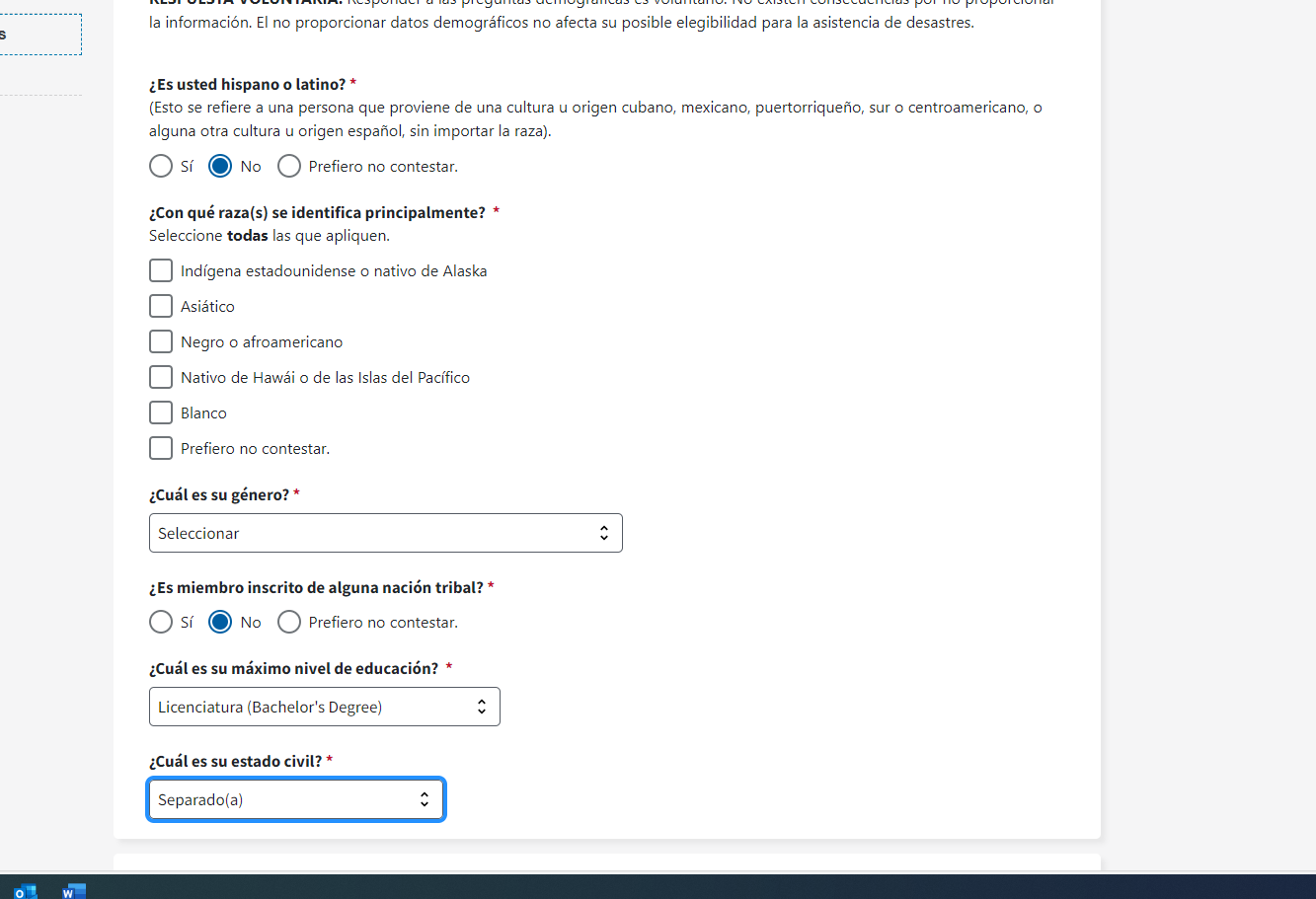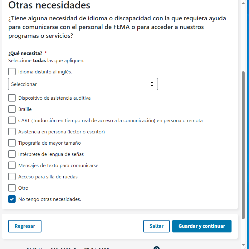 FEMA Form FF-104-F Tele-Registration, Registro Para Asistencia De Desastre
