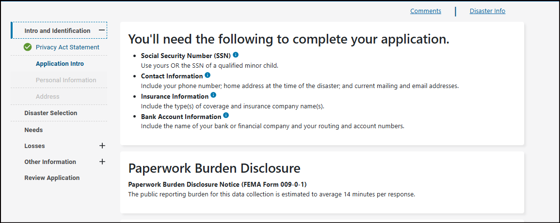 It's important you understand that your application becomes a legal document. FEMA may use external sources to verify the accuracy of the information you provided.