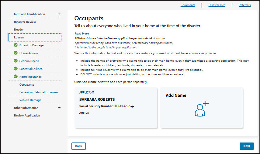 The information I entered on your FEMA application is true and correct to the best of your knowledge.
