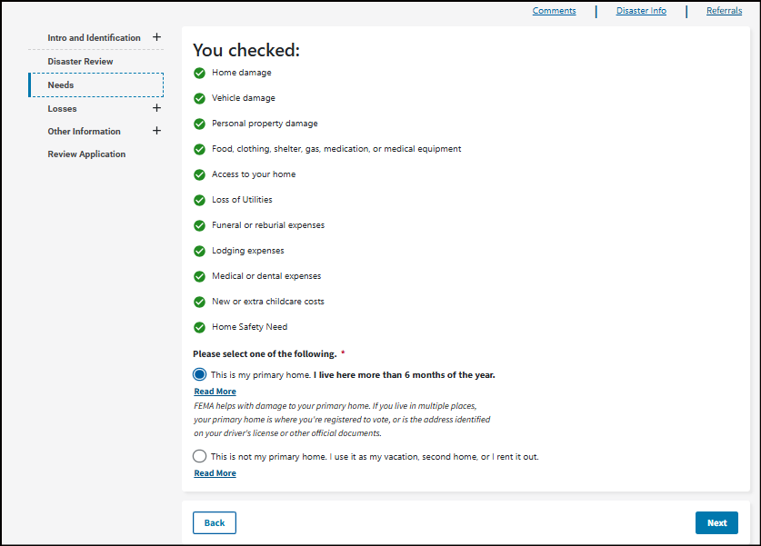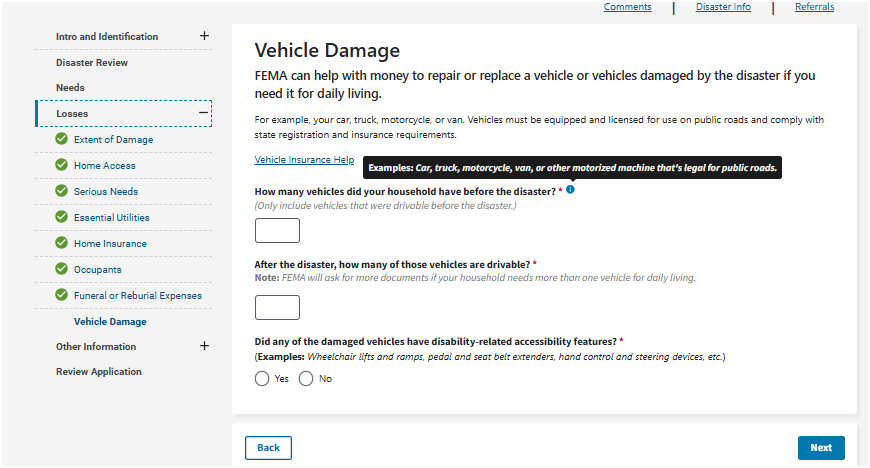 This may be your home address, where your vehicle was damaged, where you sustained an injury from the disaster, or where your loved one passed away from the disaster. To get assistance, your damaged property or where the loss occurred must be in a declared disaster area.