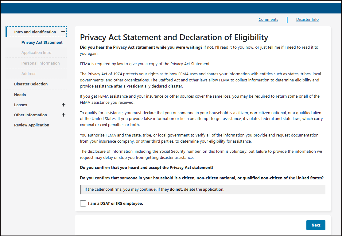 Disaster Assistance Registration