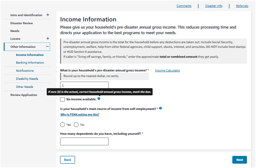 • You authorize FEMA to verify all information you told me to enter on your application, about your primary home, income, identity, and dependents. They use this to determine your eligibility for assistance.