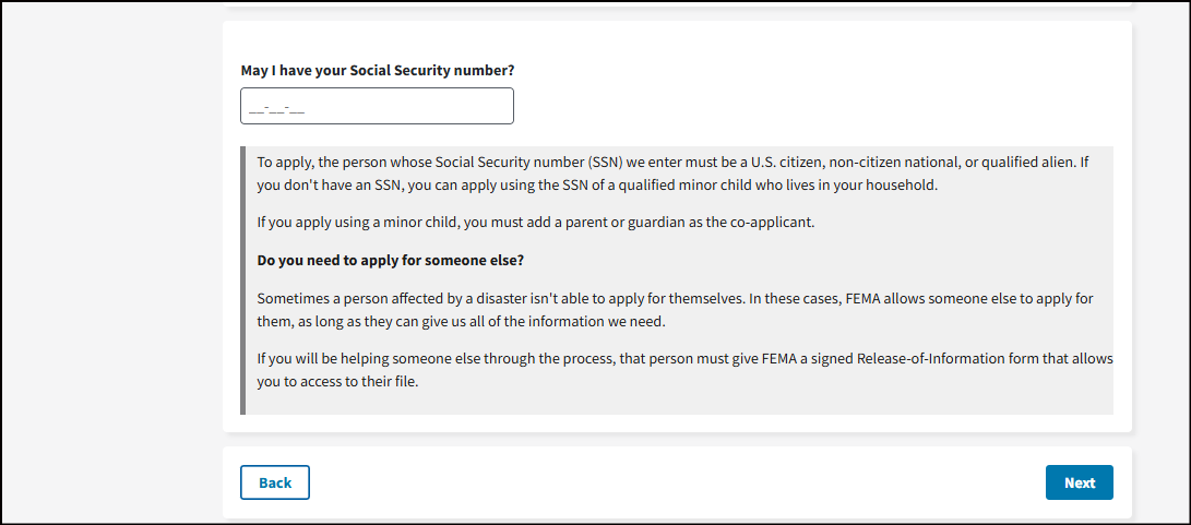 To apply, the person whose Social Security number (SSN) we enter