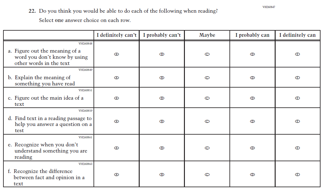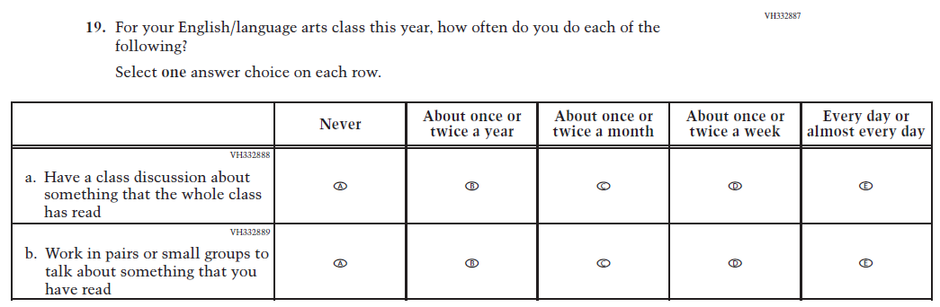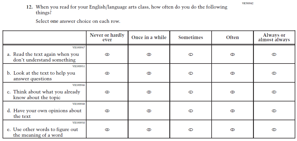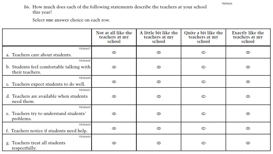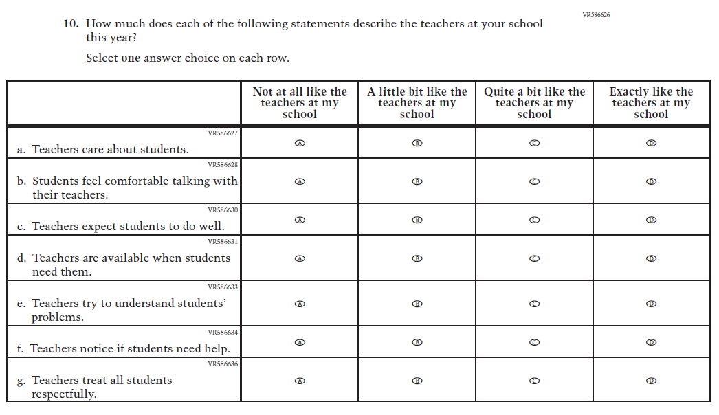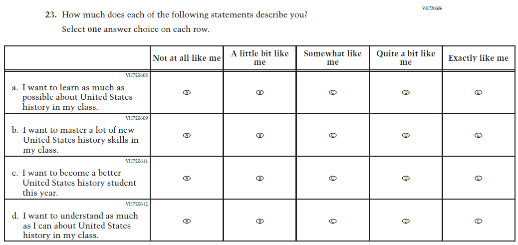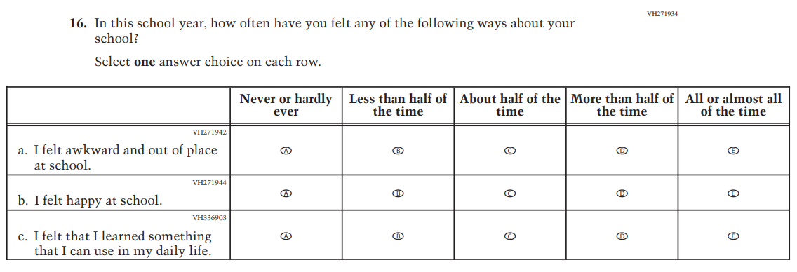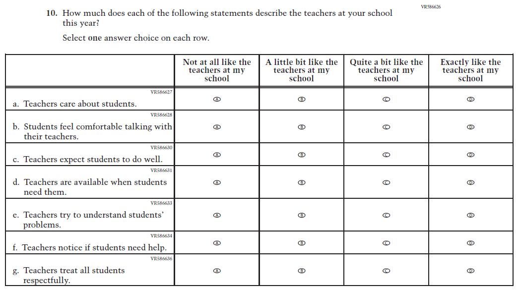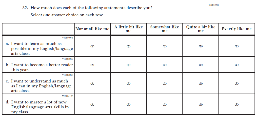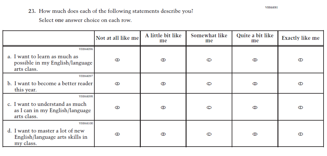 This item was added for consistency with the questionnaire at grade 4. |