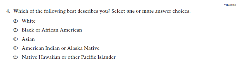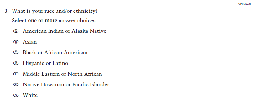 This Item was dropped and replaced with an updated Item (VR858698) that adheres to OMB updated Statistical Policy Directive No. 15. |