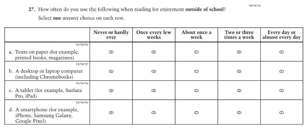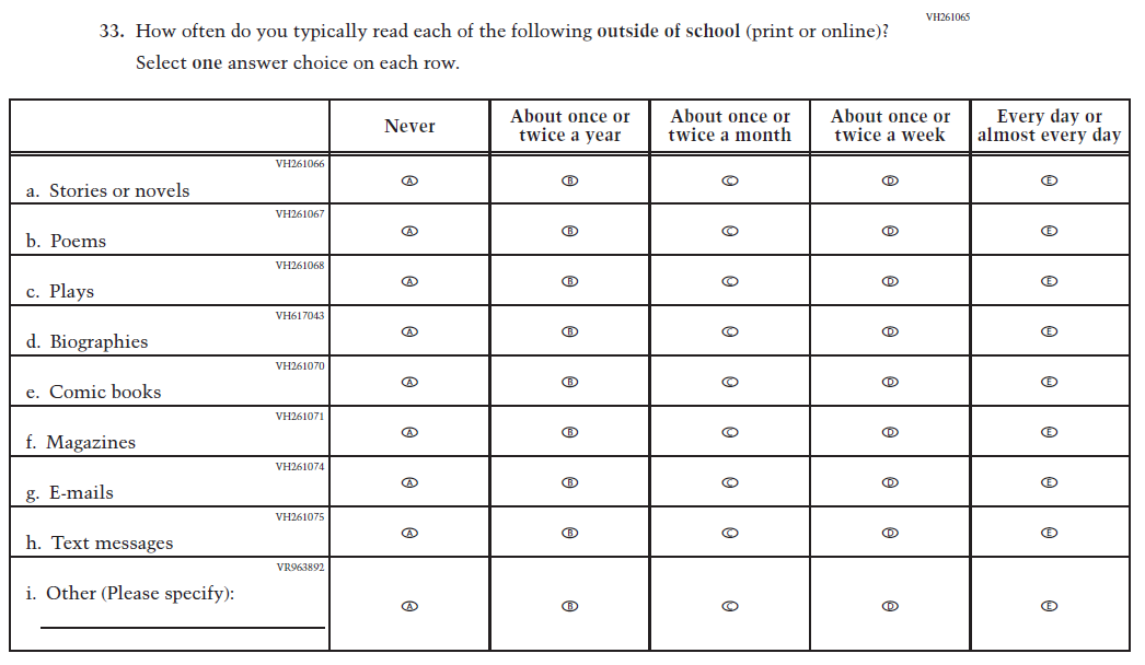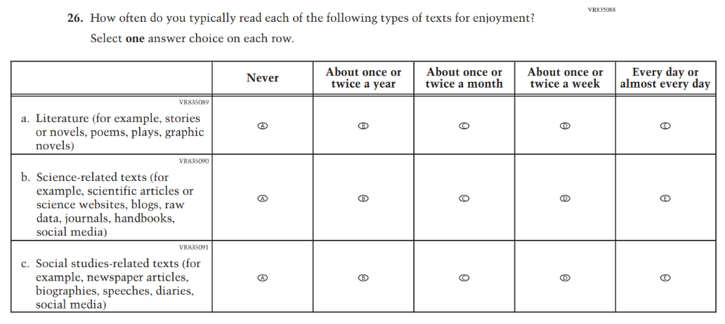 This Item was revised to put the emphasis on “reading for fun.” |