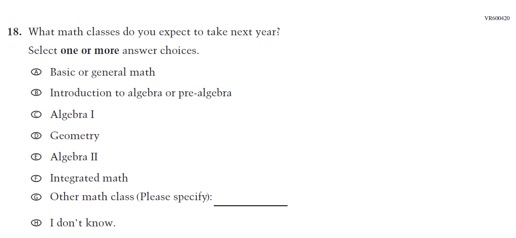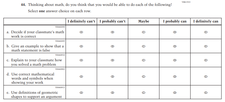 This item was developed to measure content aligned with the new Mathematics framework. |