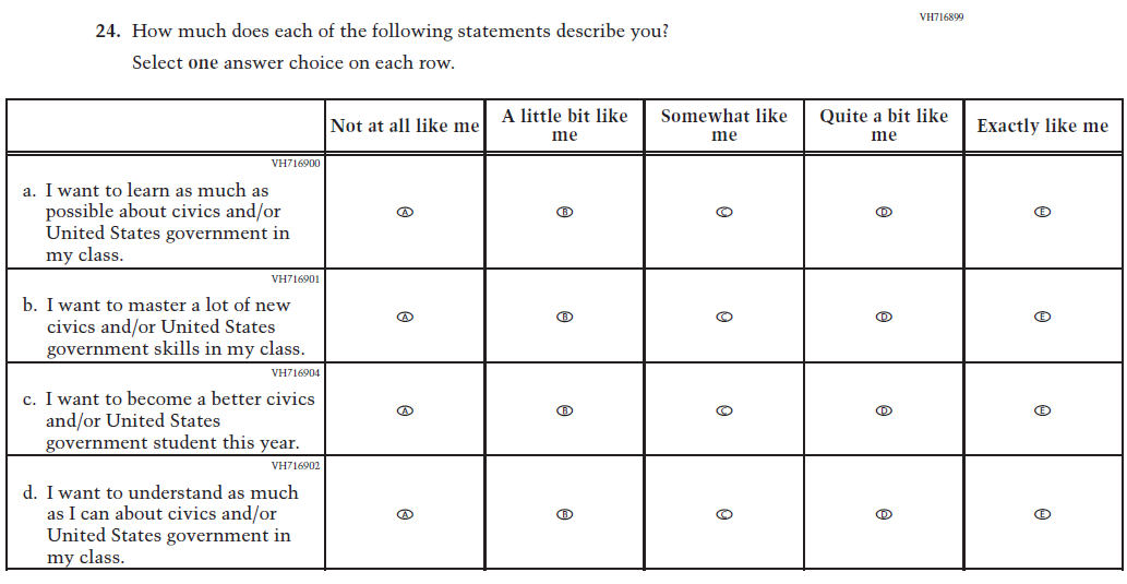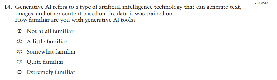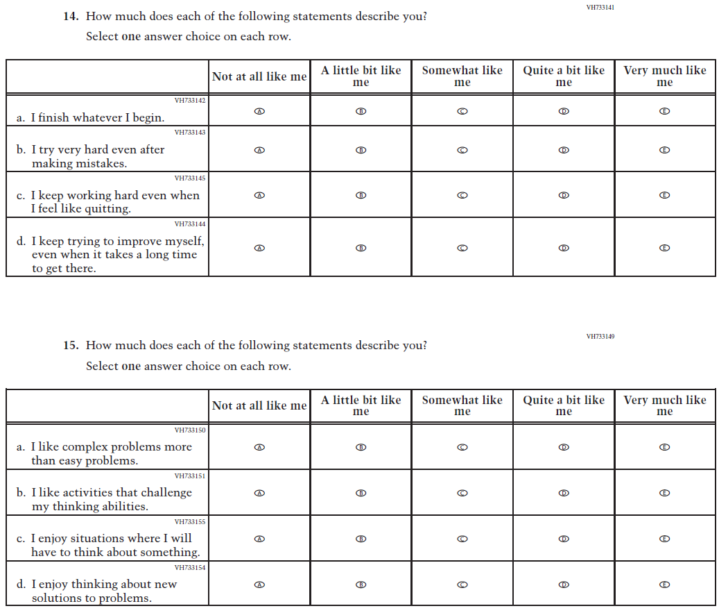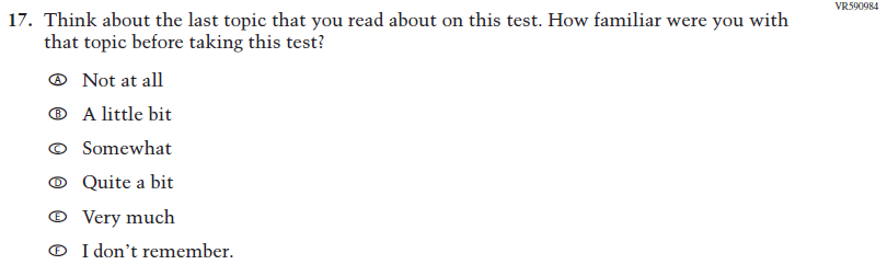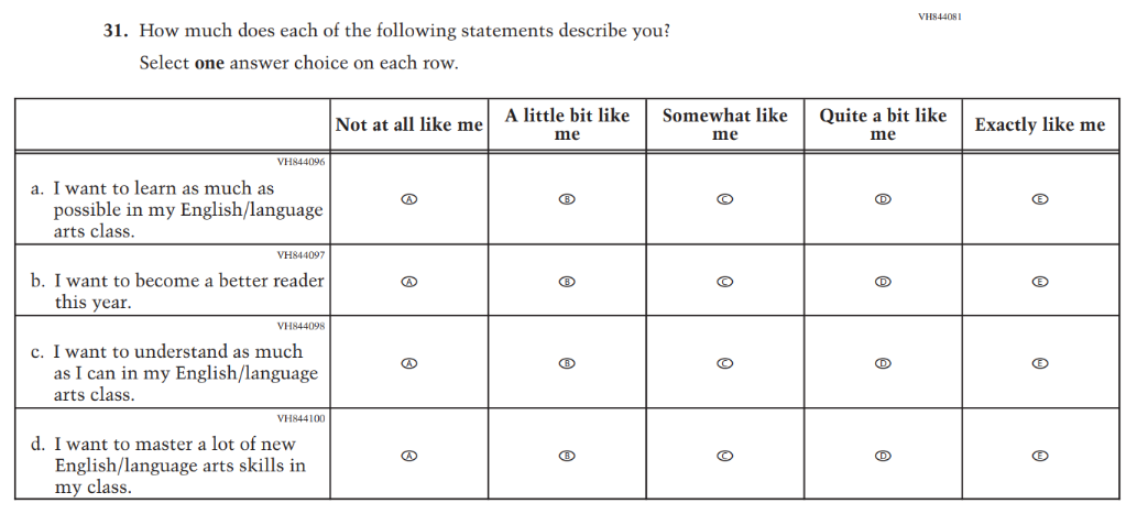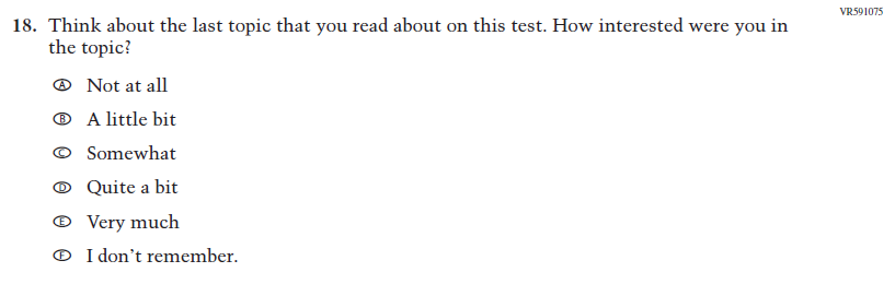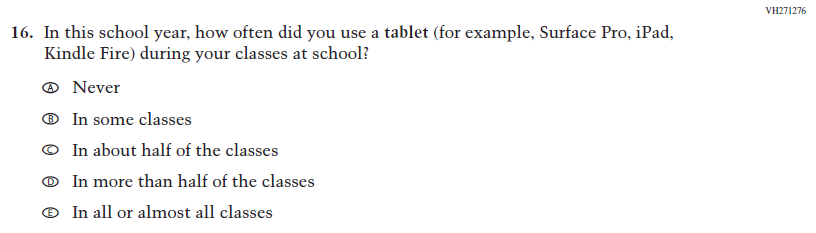 This Item was added to understand students’ experiences with using their devices to take the assessment. |