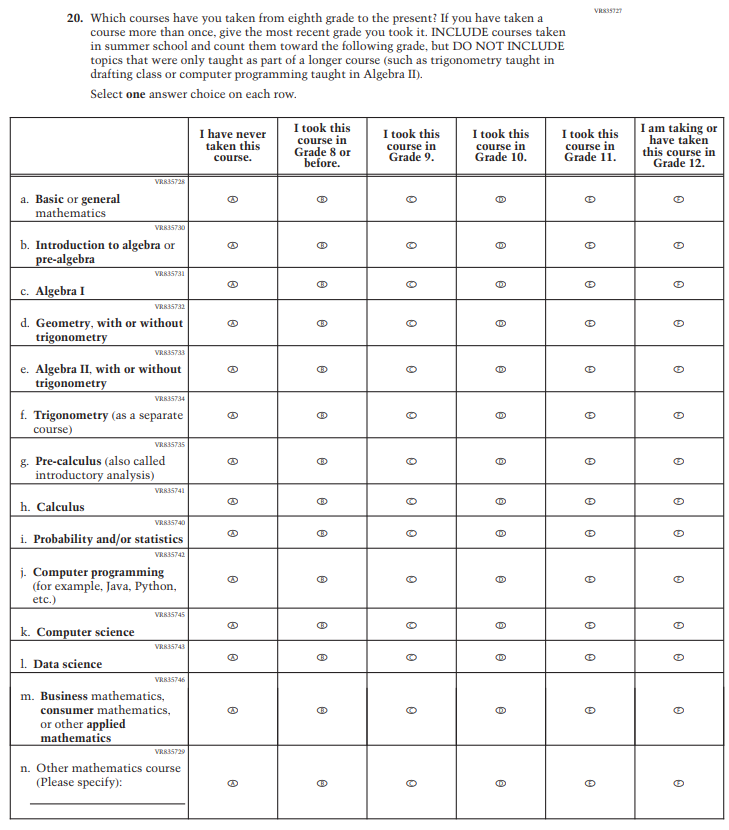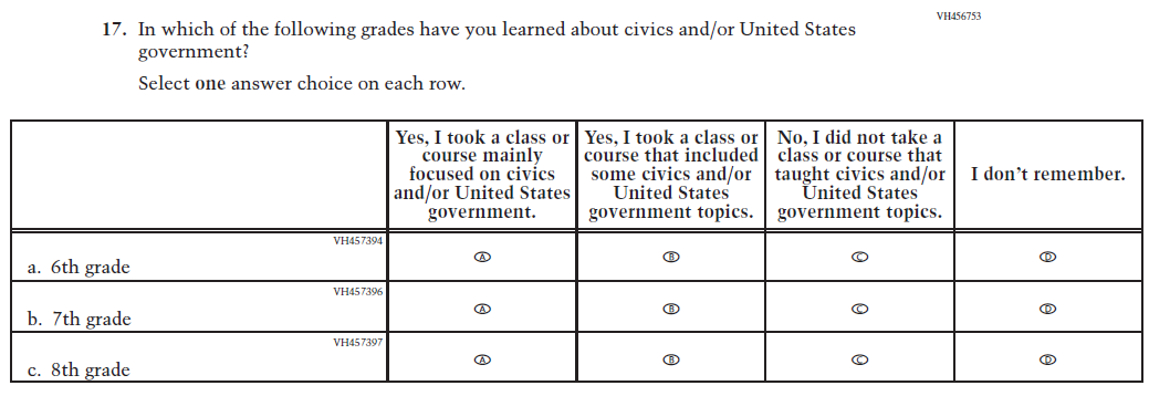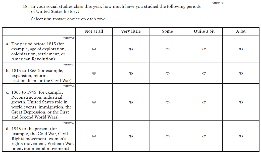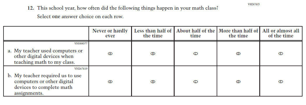 Learning Recovery Items were dropped from the 2026 NAEP Assessment. |