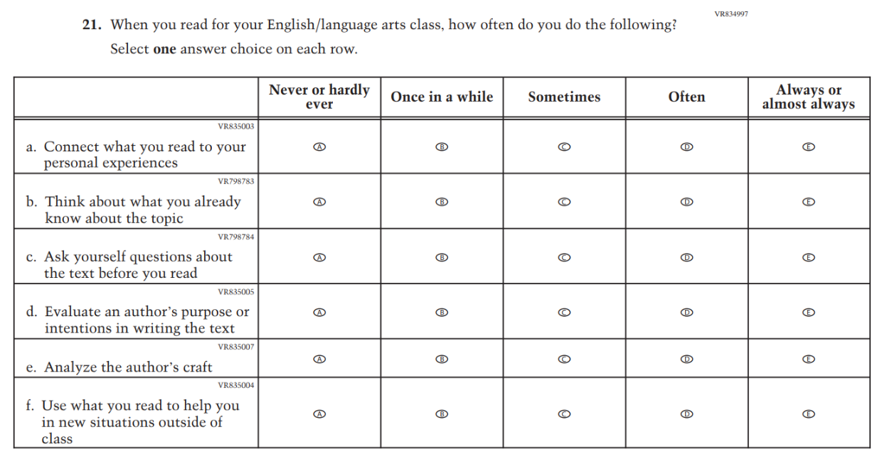 This item was developed to measure content aligned with the new Reading framework. |