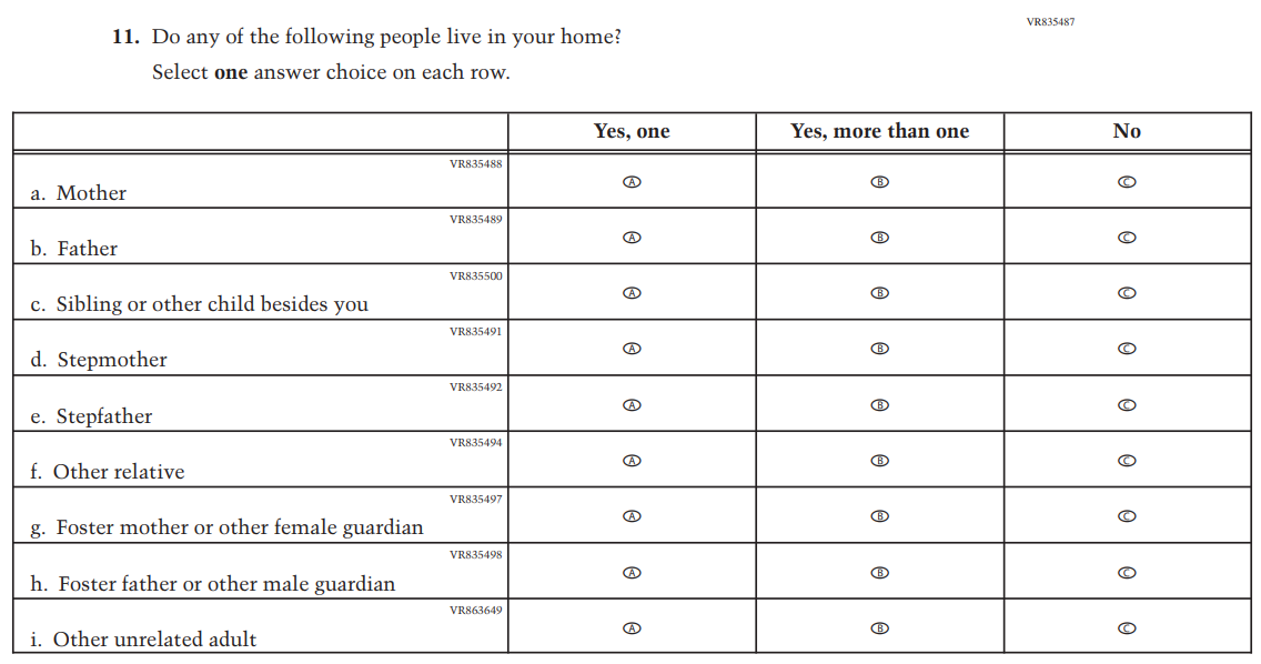 VH27144 was dropped and replaced with Item VR935135 as an updated format for collecting information on parent/ guardian education and employment. |