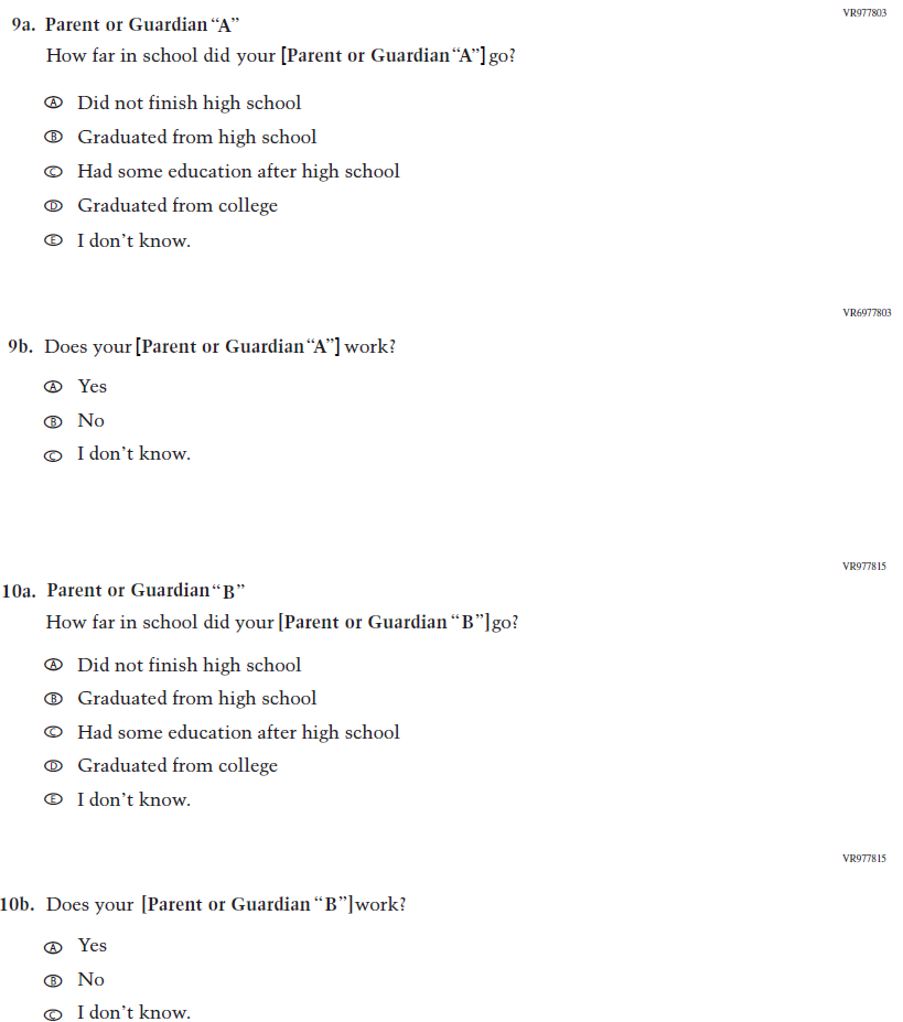 Dated Parent/ Guardian Employment Item was replaced with an updated format. |