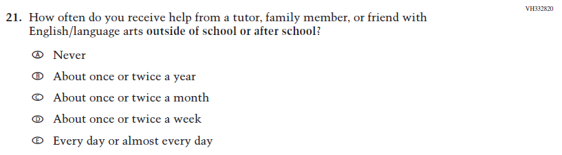 This item captures the important aspect of help or tutoring received by students. |