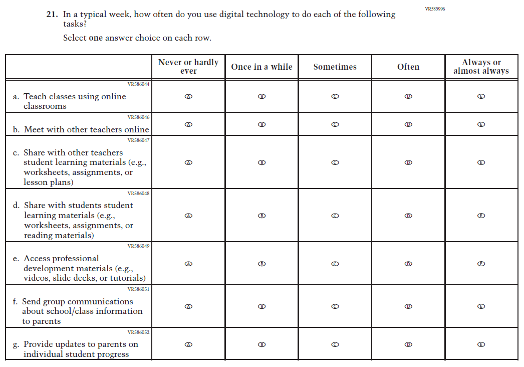 This Item was dropped to prioritize newer, updated Teacher items on Technology Use. |