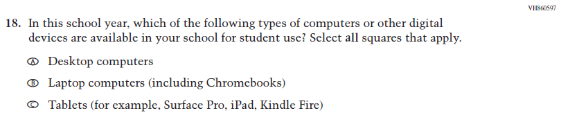 For 2026, we have aligned Inline Directions in Teacher and School Items with the Directions currently used in Student Items. The Item has been revised to focus on training in Technology Use. |