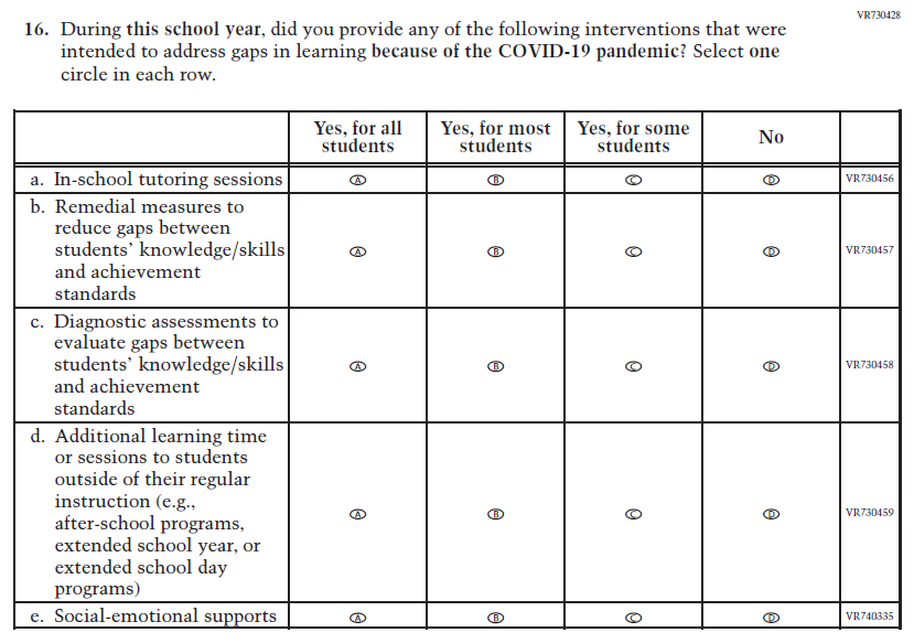 Learning Recovery Items were dropped from the 2026 NAEP Assessment. |