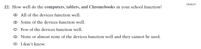 This Item was developed to measure technology use and quality of digital technology in schools. |