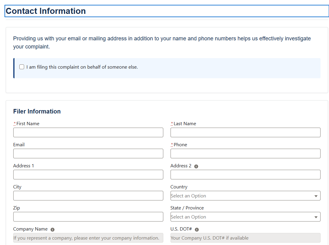 FMCSA Complaint Center Complaint Information Collection Update
