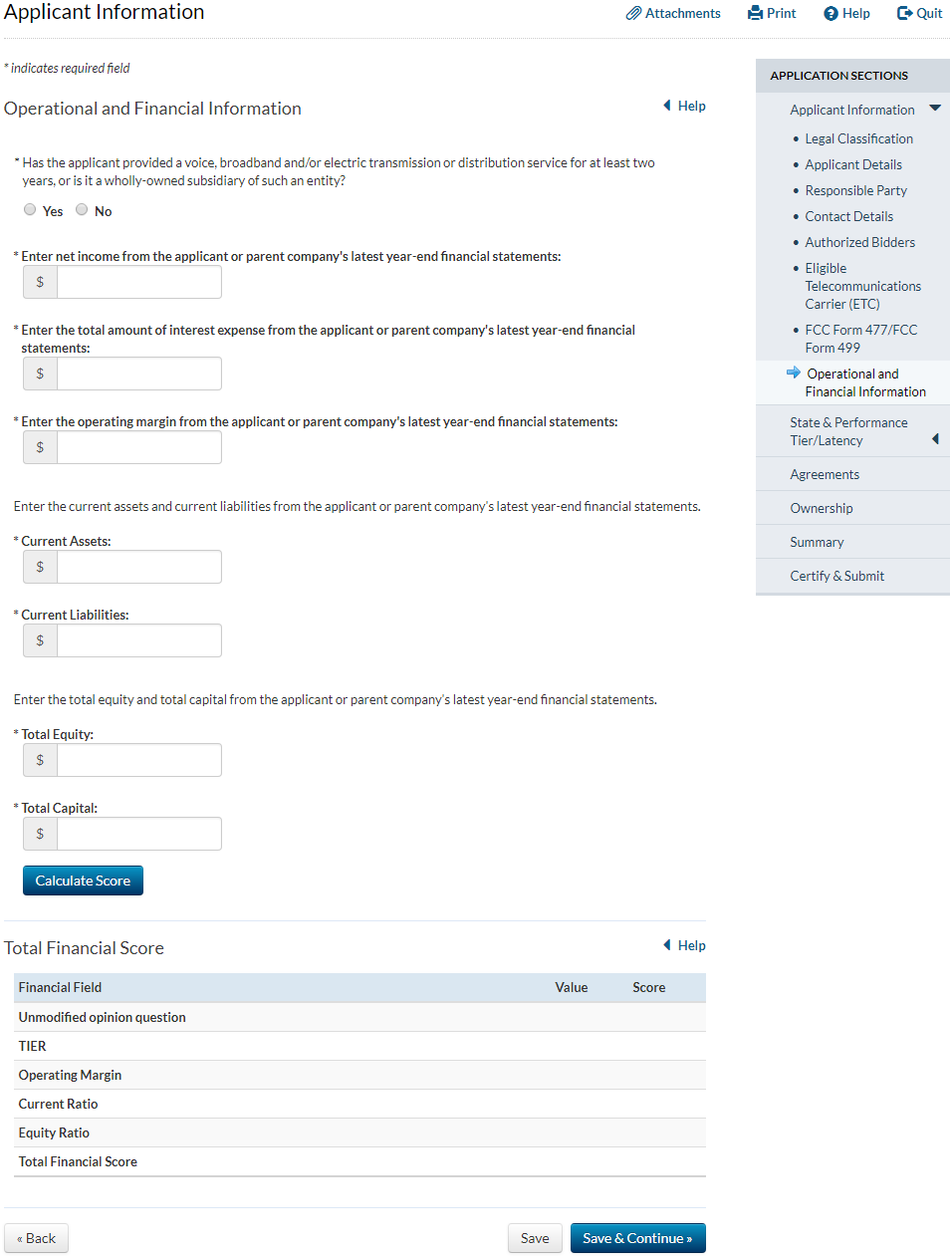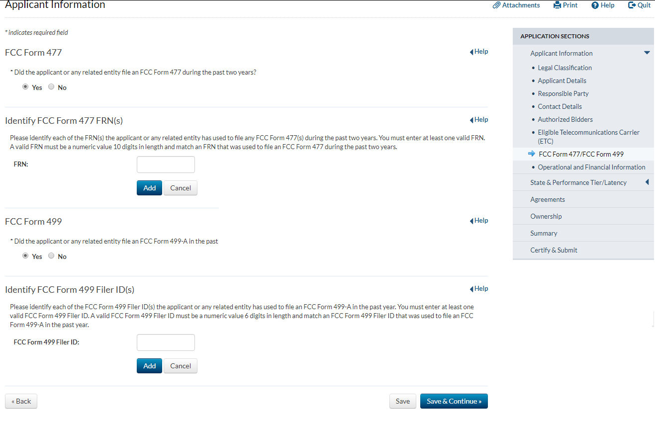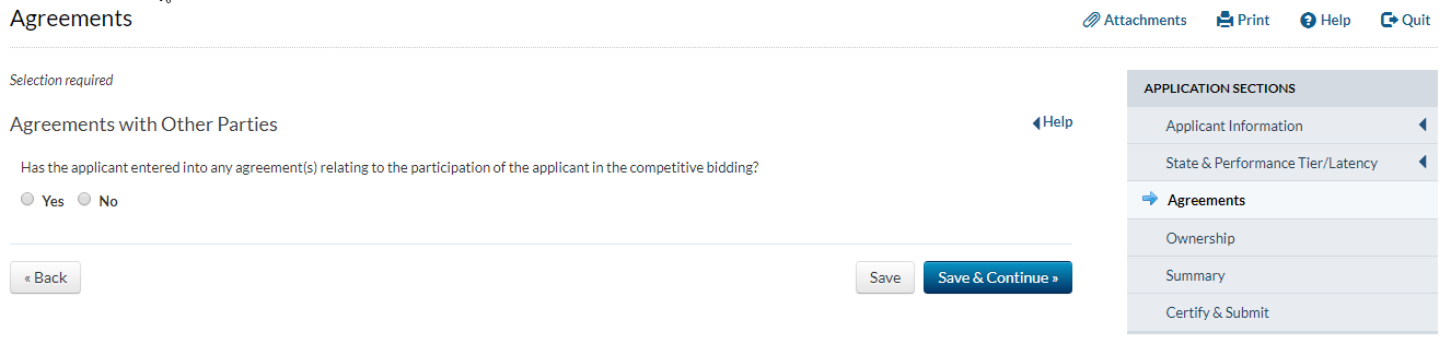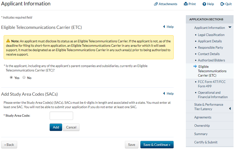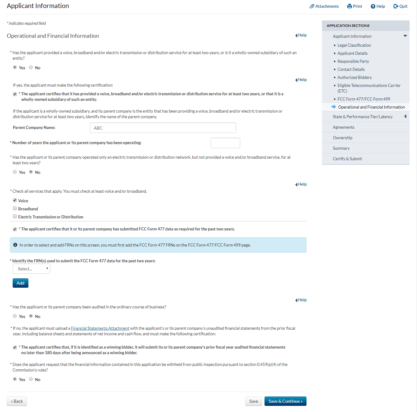 Applicant answers ‘yes’ to the question that asks whether the applicant has provided service for at least two years and answers ‘no’ to the question that asks whether the applicant has operated only an electric transmission or distribution network