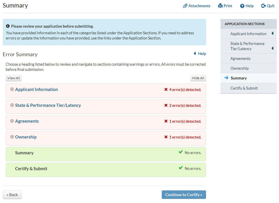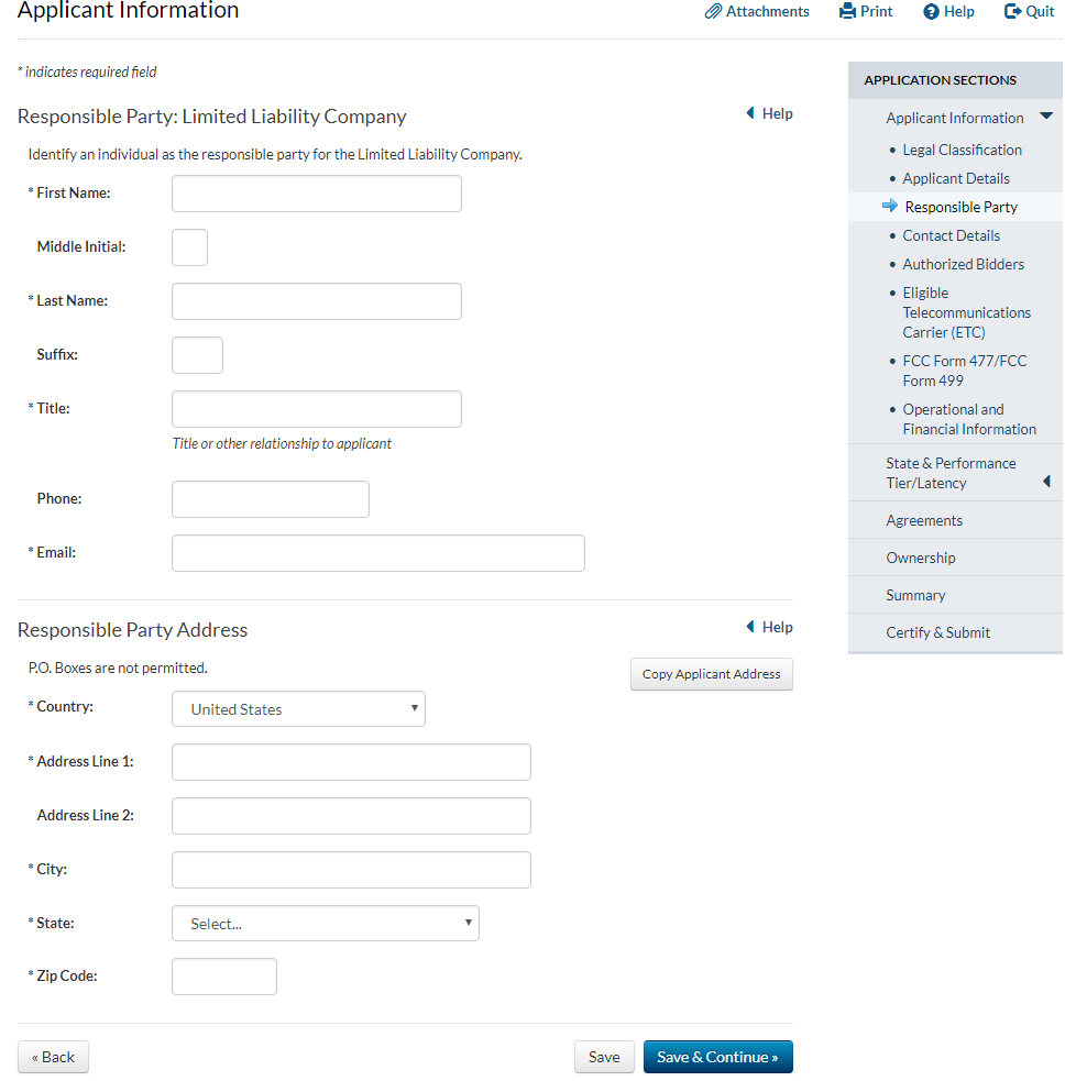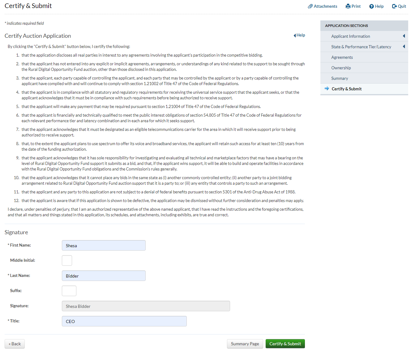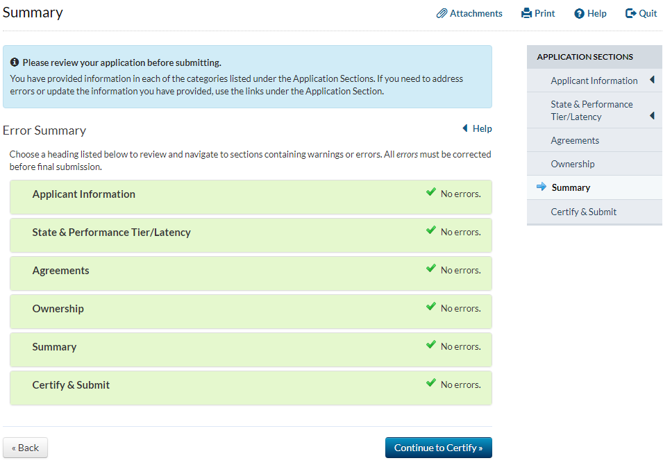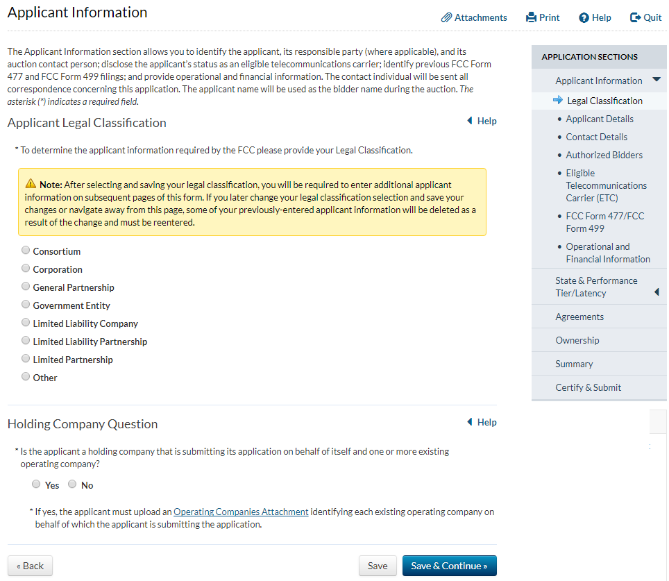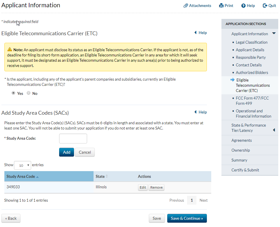 Applicant answers ‘yes’ to the question that asks whether the applicant has provided service for at least two years and answers ‘no’ to the question that asks whether the applicant has operated only an electric transmission or distribution network