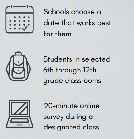 Determine the date that works best for your school to complete the survey. Any time between January and May. February and March tend to be the best months for participation.