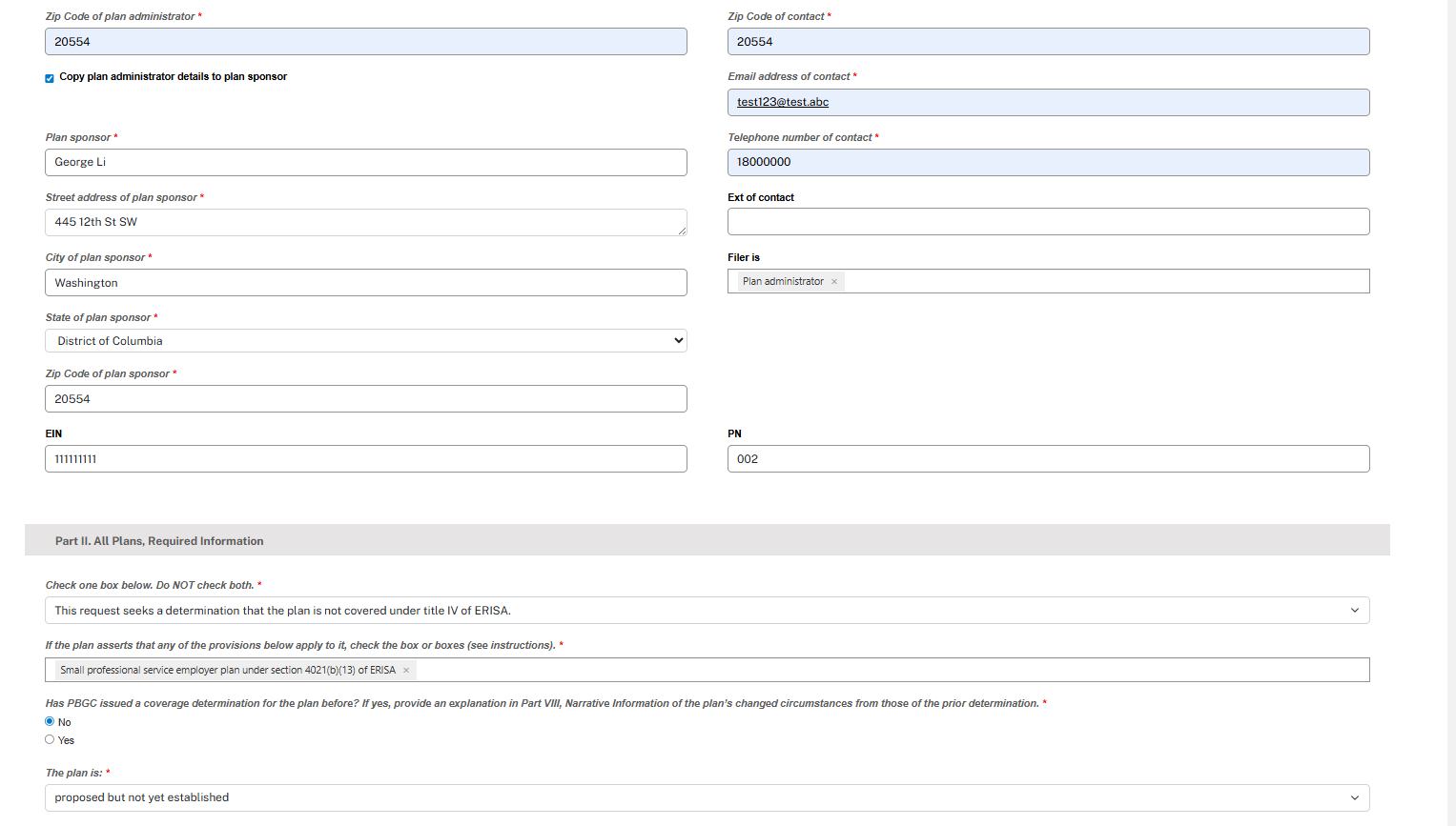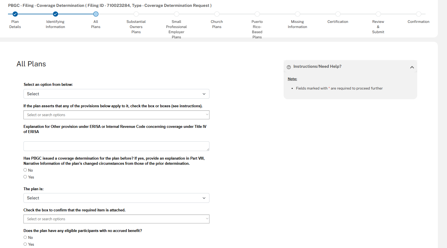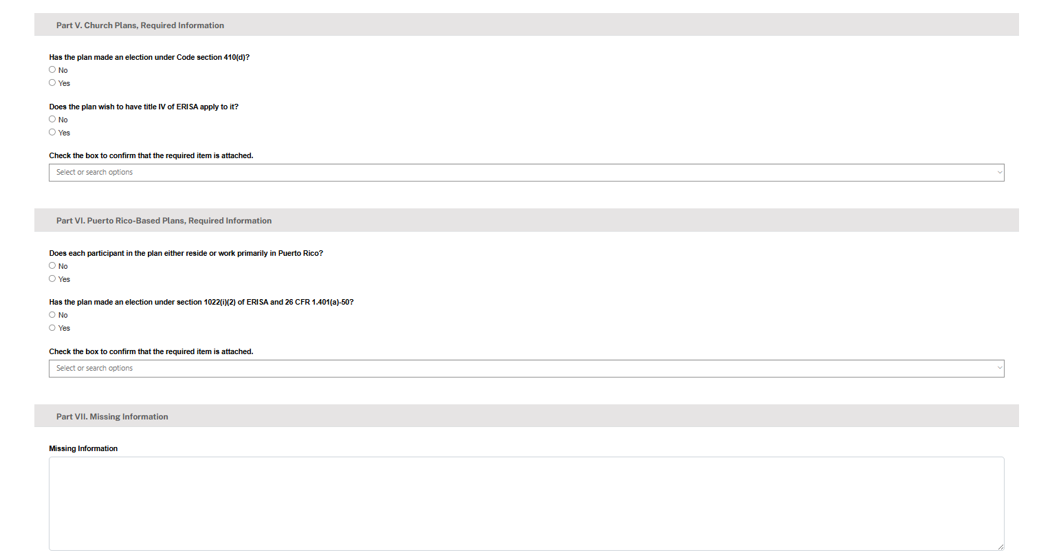 Currently, a plan must submit its coverage determination request by email. In the currently-approved instructions, there is language about PBGC’s e-Filing Portal becoming available in the future. The e-Filing Portal will be accepting coverage determination filings beginning December 8, 2025. The information collected in the e-Filing Portal is the same as that collected on the PDF forms that are submitted via email.