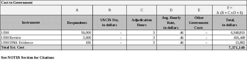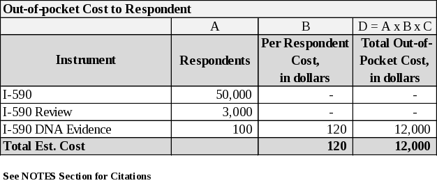 This information collection may impose some out-of-pocket costs on respondents in addition to the time burden for the form’s preparation. For informational purposes only, there is no filing fee associated with the I-590.