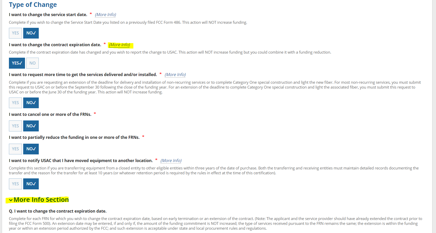 will be using the FCC Form 500 (e.g., by selecting changing service