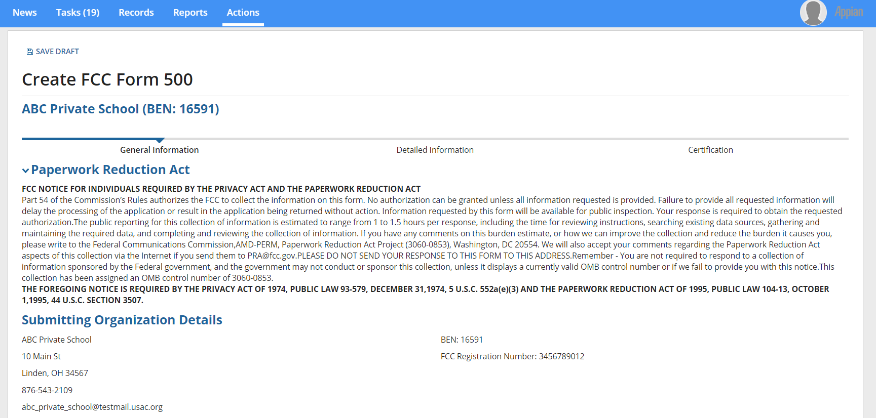 The below screenshots demonstrate how an FCC Form 500 may be filed within the E-Rate Productivity Center (EPC).